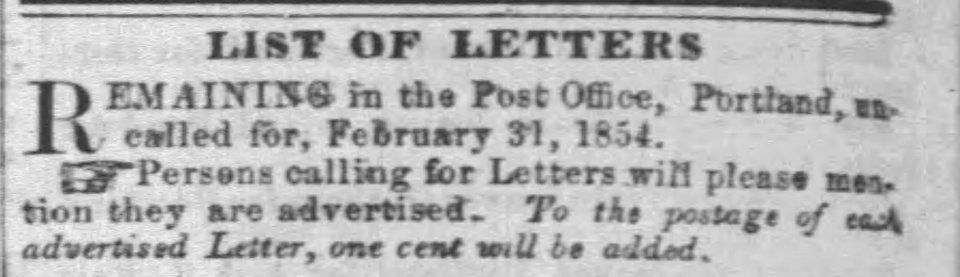 1043 Congress St_EA_02_01_1854 ← Previous Next → Eastern Argus February 1854. What’s with that date? Newspapers.Com