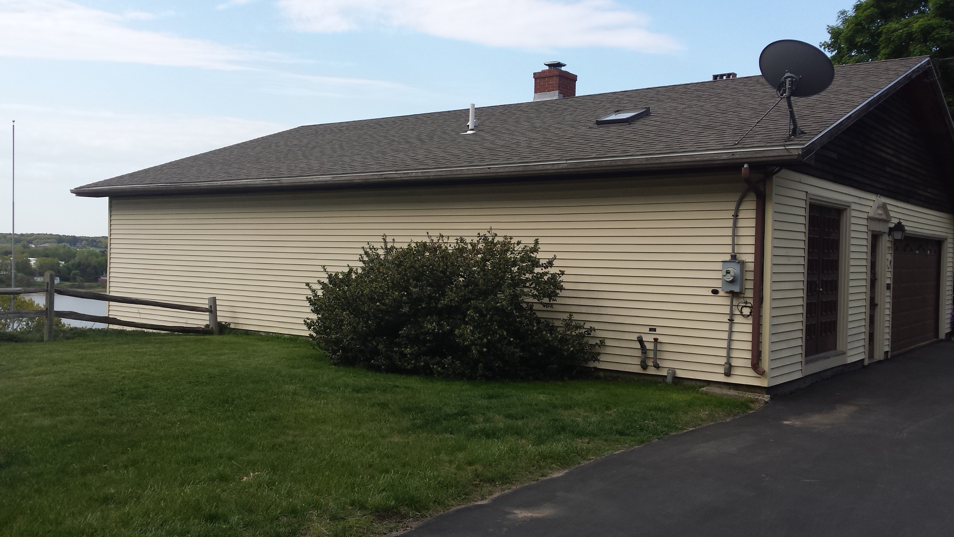 The sides are no better looking. Old yellow vinyl siding and NO windows at all. Talk about turning your back on the neighborhood.