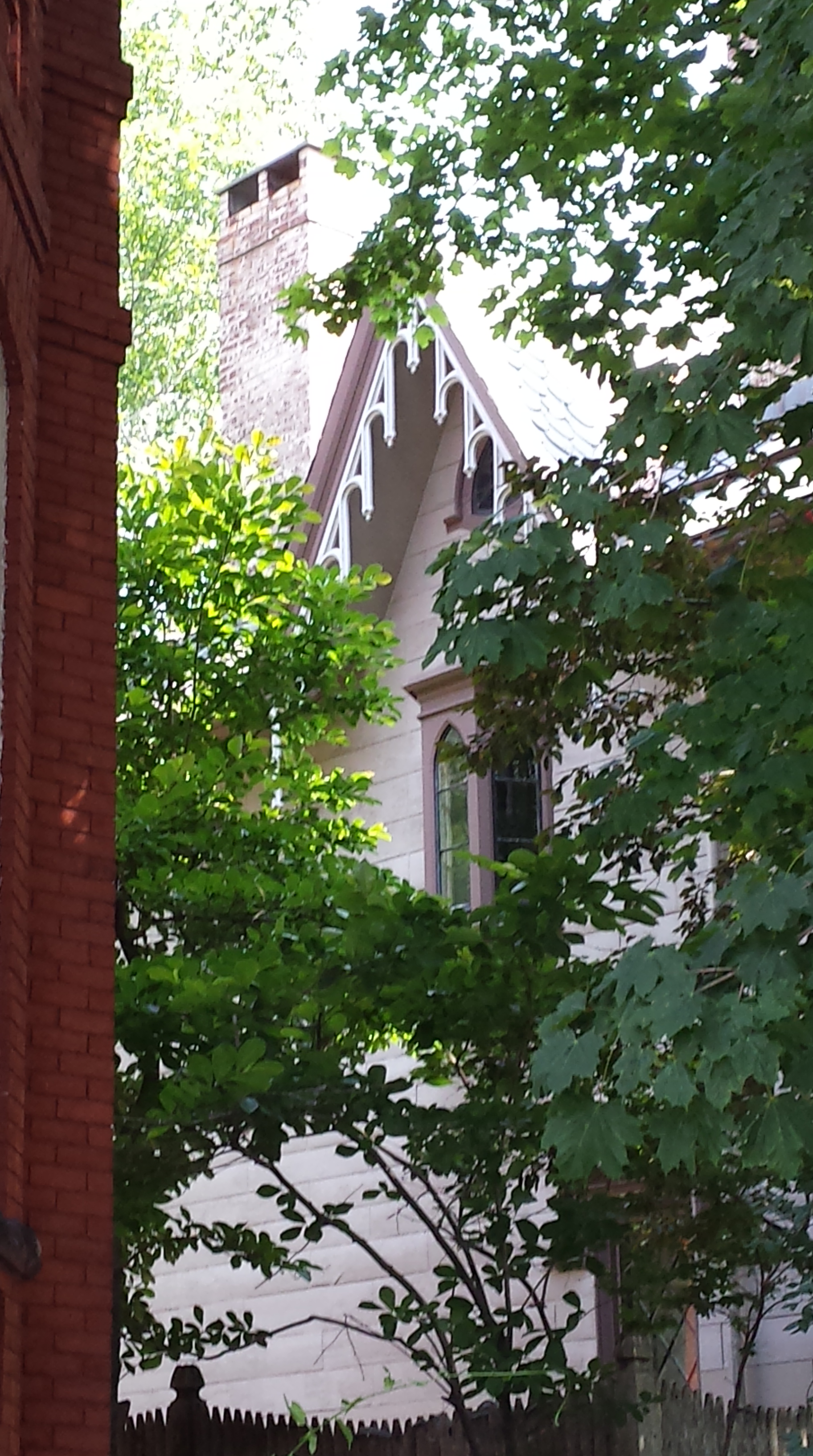 The Gothic Revival was seen as a response to the formalism and discipline of the popular Greek/Classical Revival styles. Borrowing from older English country and Renaissance Italian villas, the homes were intended for the newly popular suburban communities. It was less often seen in urban environments such as this.