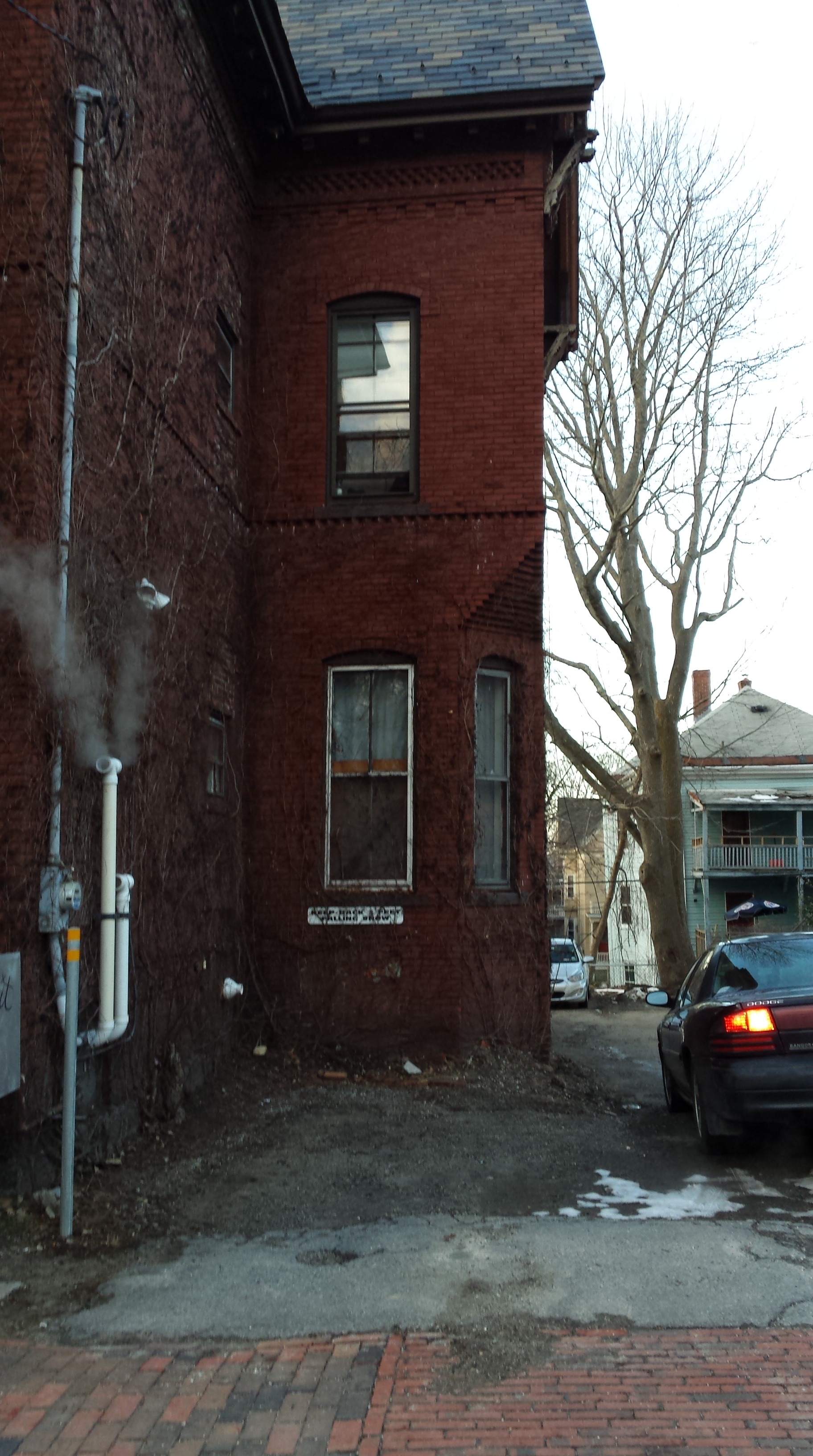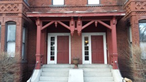 A 3 story building of brick, the house was built as a 2 family home seems to have remained as such during the Doten’s 66 years of ownership. The style is predominantly Queen Anne with some hints of the Stick style in the gables. With the current dirty surface and need of a pointing, much of the detail is reduced and, in some cases, practically invisible.