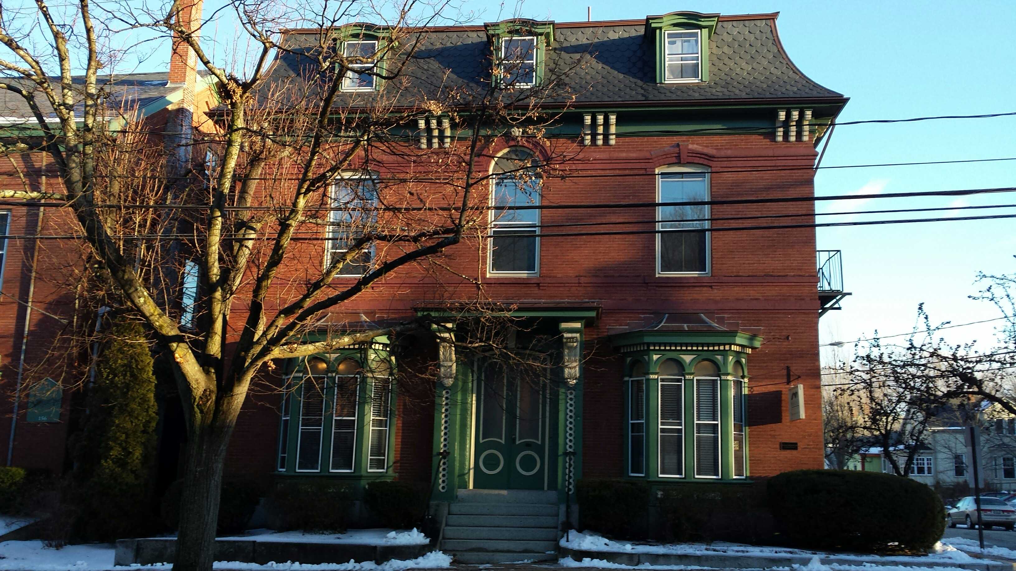 A fairly straightforward brick Mansard with some intriguing details.