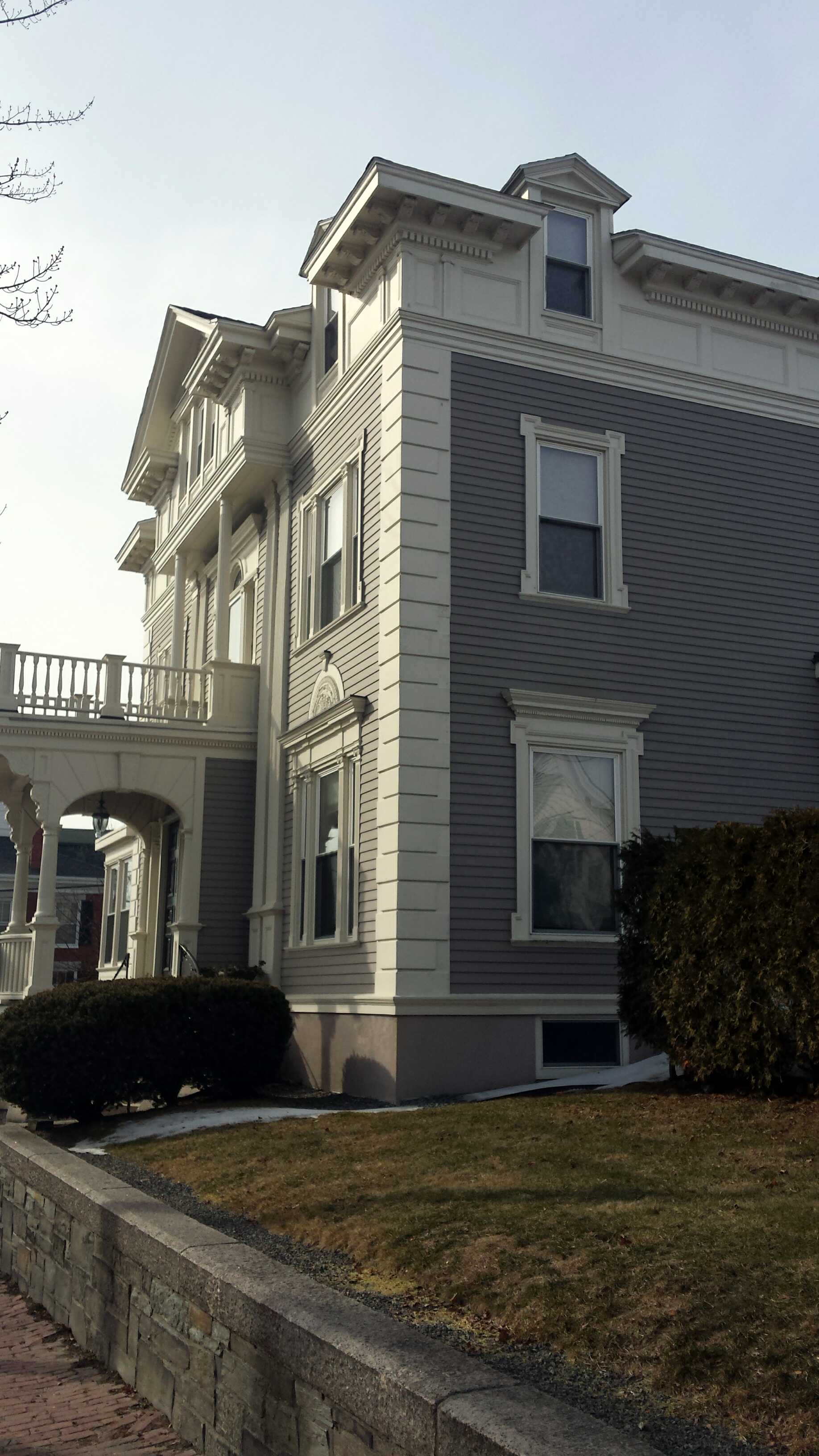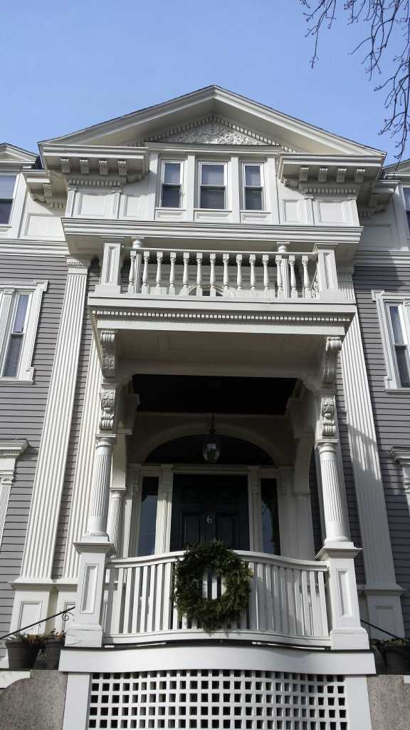Henry P Dewey was a partner in J S Winslow & Co. Jacob S Winslow was a merchant, trader & one of the biggest ship owners in Portland in the 2 decades after the Civil War. Henry was married to Jacob’s sister Sophronia. Henry purchased the property in 1879. One wonders why the Deweys waited 7 years to ‘move in’. A little voice says this is a Francis Fassett design. Allot of the design is within his oeuvre but the pastiche of detail isn’t. The period is certainly right. A puzzlement.