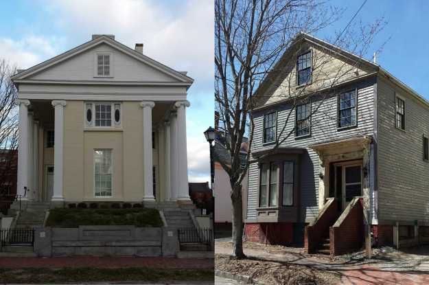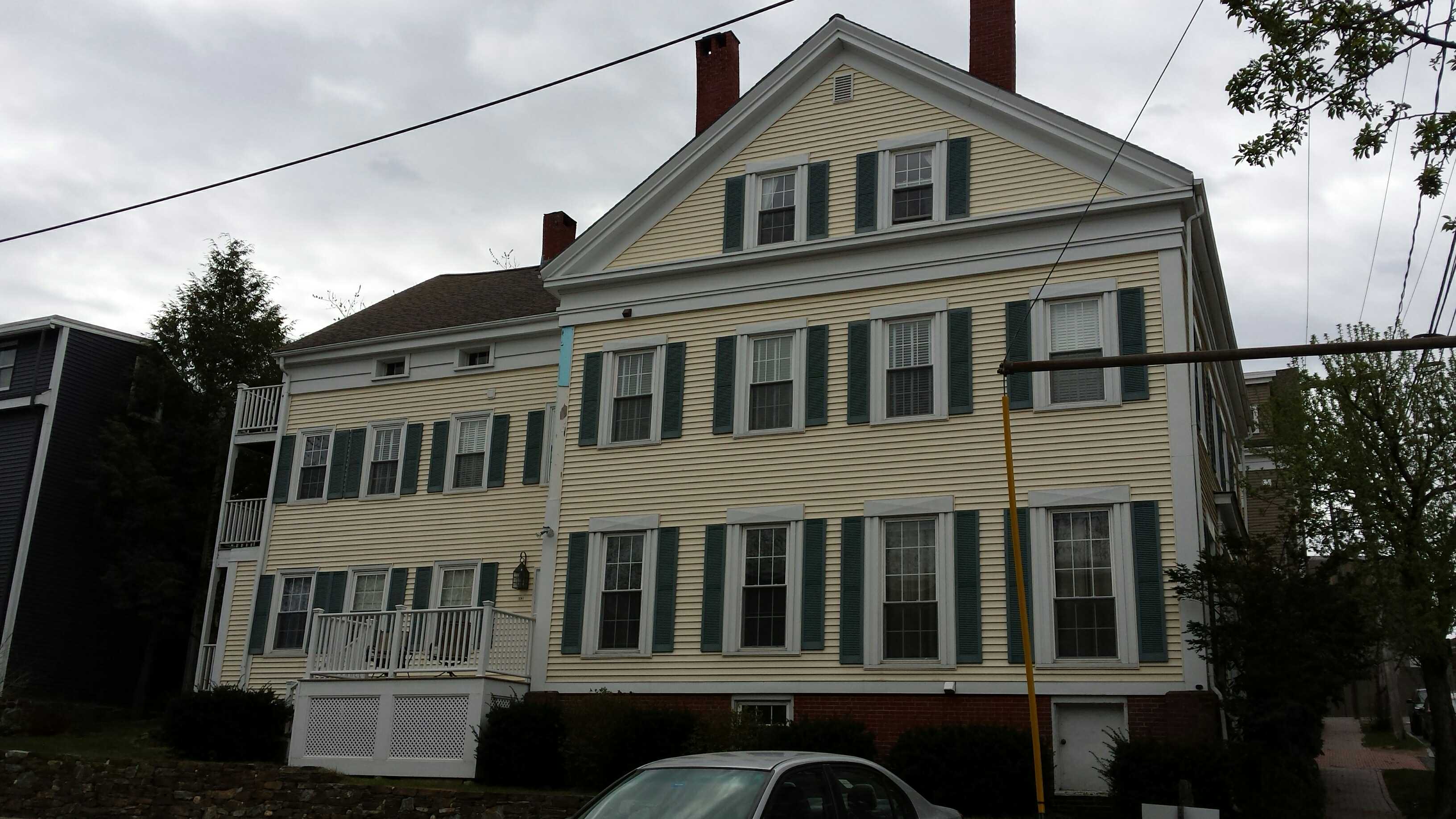 This growth was seen in Bayside with the búilding of several modestly-sized double houses in the “urban” mode of the Greek Revival. This mode is characterized by having the long side of the building as its main facade whereas the “classic” mode has the gable end as the facade. The classic style can be best seen in Charles Quincy Clapp’s home on Spring Street or, more modestly, at 67 Gray Street.