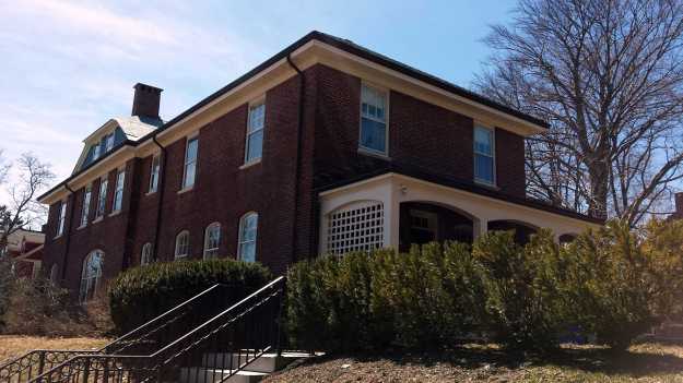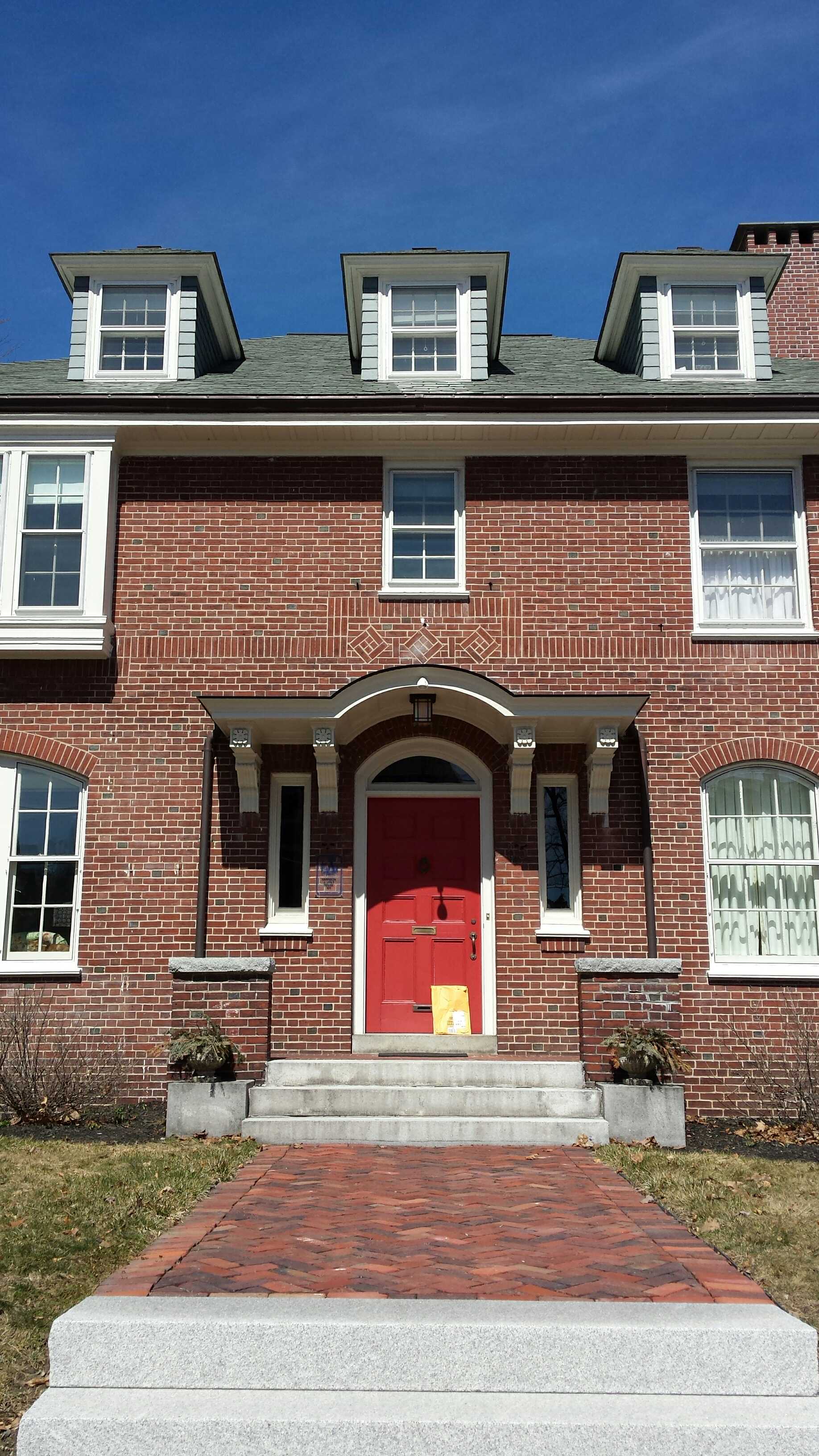 The house is built from brick. It’s two stories with a third in the garret. Style is mostly Colonial Revival with some Arts and Crafts influences visible on the front facade. The form is an extended block along Bowdoin with a rear ell paralleling Chadwick Street.