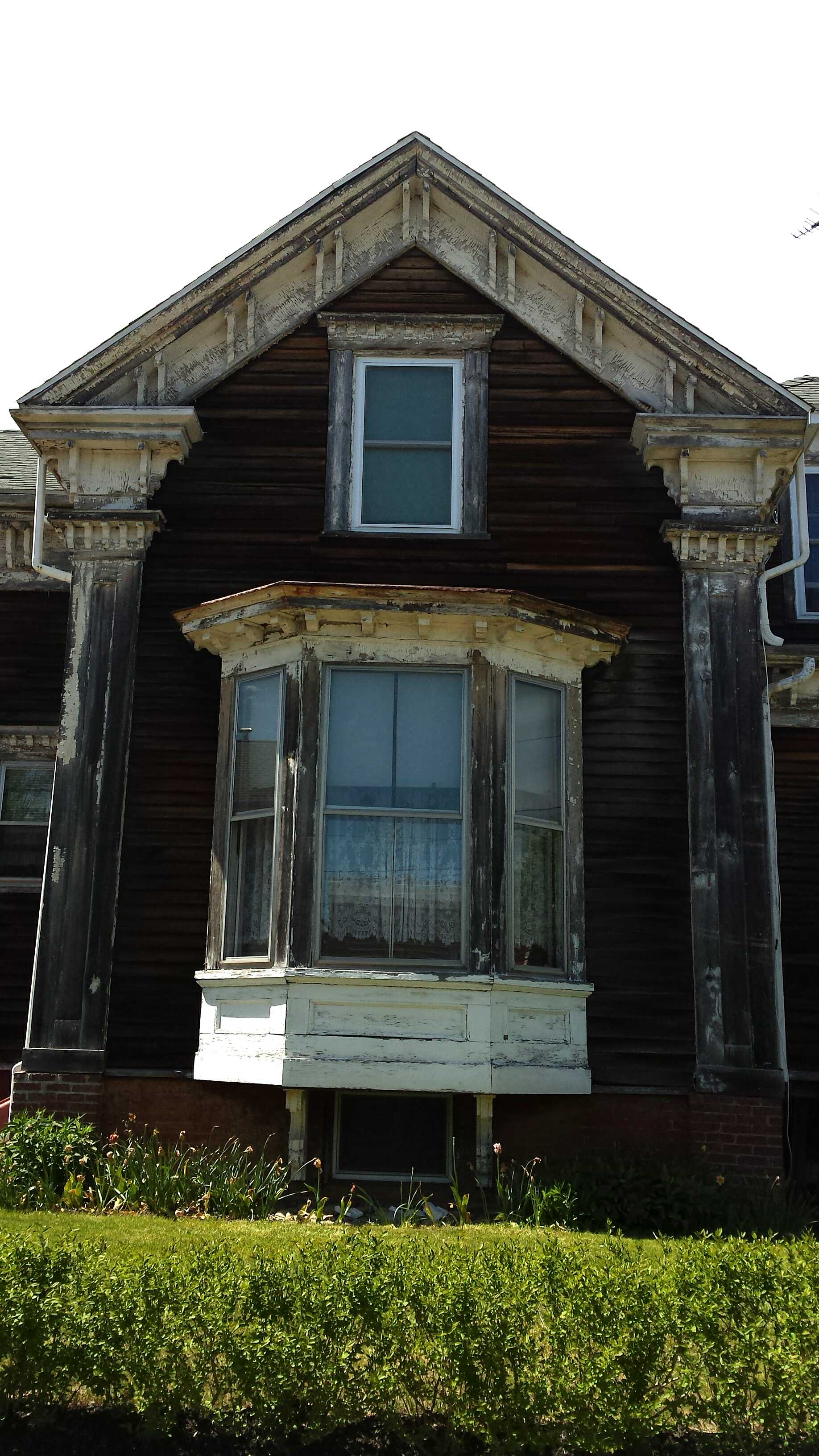 It’s a form we have seen before. A pair of boxes crossed at about midpoint with a pronounced gable at the street. It is a bit unique in sitting next to one of the Hill’s few remaining service streets, Gilbert Lane, and as such presenting a full long facade as well. Styling is mostly Italianate with some vaguely Greek Revival references.