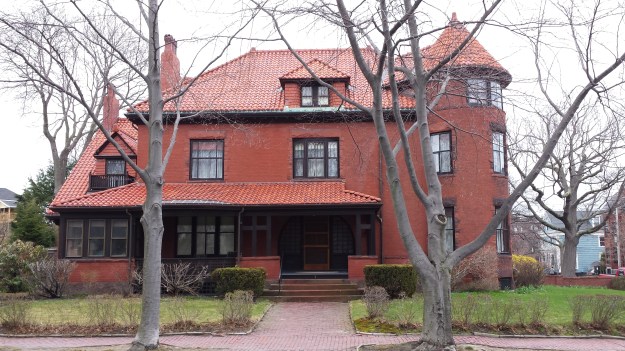 The choice of terracotta tiles for the roof is an interesting one. It’s not a traditional material for the style, especially in northern New England. There are contemporaneous examples of their use in Portland, Stevens used them some in his more eclectic works, but they are very uncommon. I’m on the fence on their use here. They had a touch of vibrance and color but the resultant roof seems awfully busy.