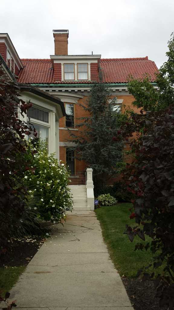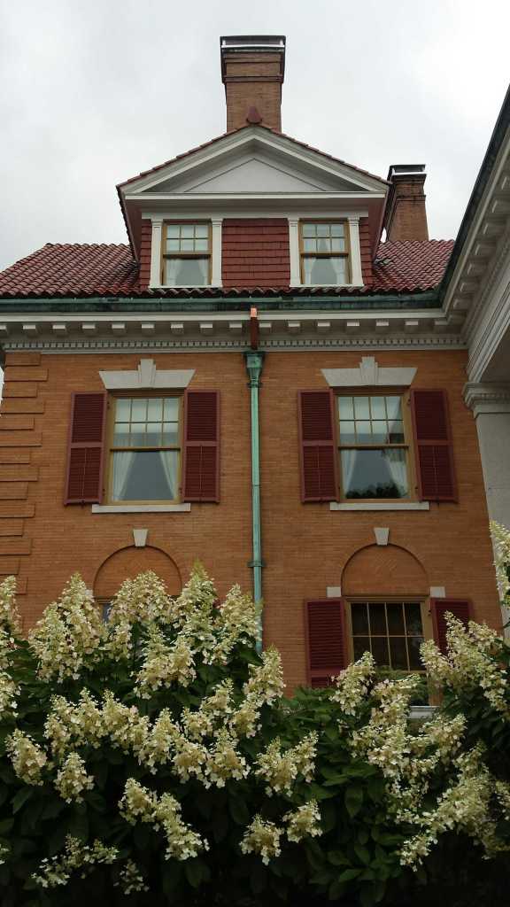 It’s perhaps the most visible of all the houses in the city. Setting on the crest of Bramhall Hill, it is seen by everyone entering the city, or just passing through on I-295, from the south. It’s buff brick shinning in the late day sun. I think it is a good subject for the 100th house here on the blog.