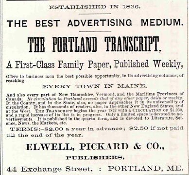 Advertisement for the Portland Transcript from Elwell’s Portland and Vicinity of 1876.