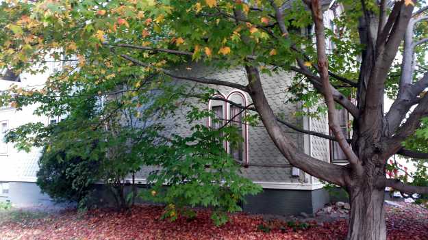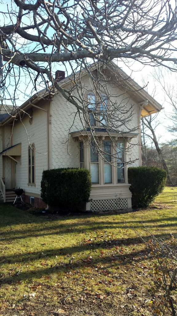 The house is a fairly common form with a bay projecting forward from a cross gable creating a modified cruciform plan. Entrance is on the east side in the corner of the crossing. The details are many. The shingles are the most obvious. Alternating between narrow, flat bottomed, and wide, circular bottomed, forms, they create a rhythmic pattern across the building. They are a unique style that is a signature of Murray’s work. The windows are Italianate in form with the round tops. The first floor bay windows are square cornered and have heavily projecting and bracketed cornices. The octagonal windows in the second floor are another signature detail for William Murray.