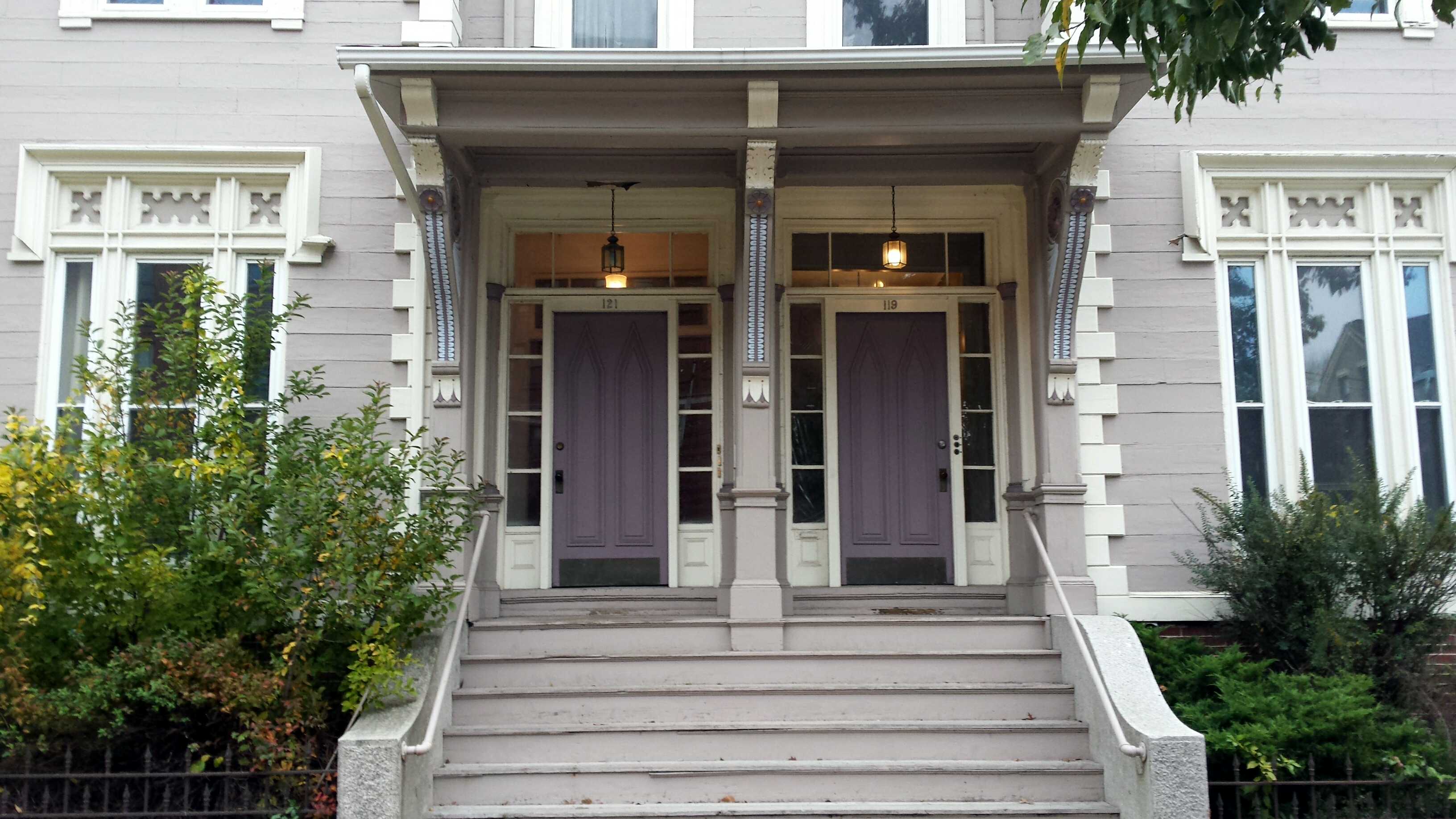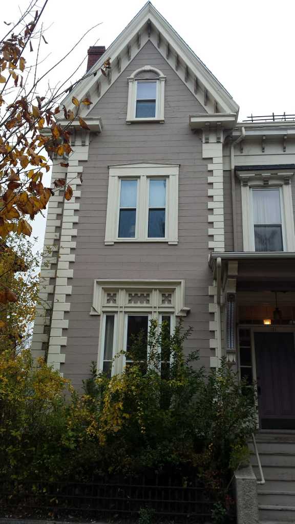 If William and Alice used the services of an architect there is no mention but there is some evidence to say they did. I am ‘on the fence’ on this one. There is a certain cohesiveness to the massing and an overall tendency towards dramatic verticality that speaks to the eye of a professional. But that is balanced by the detailing which is all over the place. We’ve got a Greek Revival entry with Gothic doors and Italianate brackets and Colonial/Italianate quoins, Gothic Revival treatments above the first-floor windows, and that funny little Colonial window in the garret. They wanted a bit of everything and they got it.