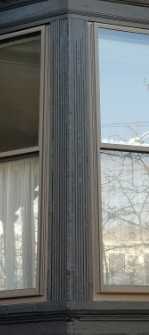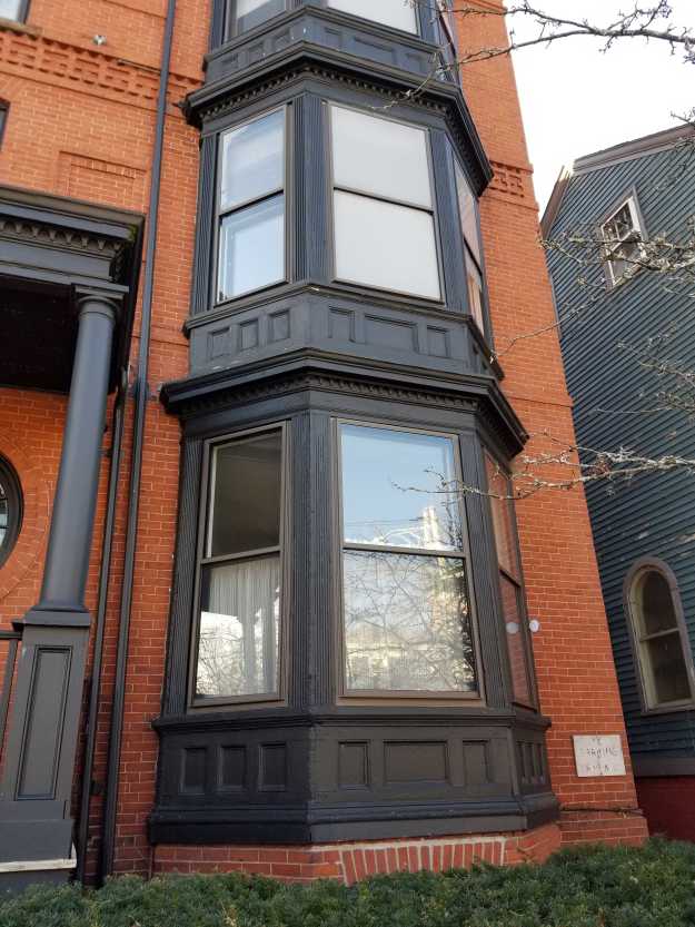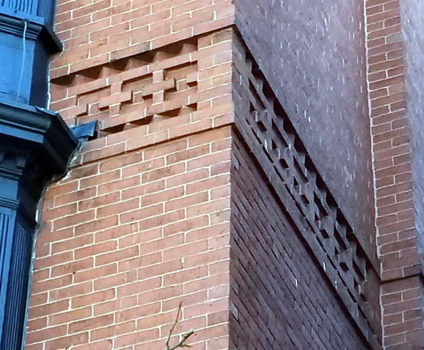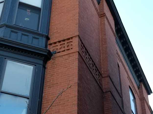 The style is Italianate, Fassett’s standby, with some Colonial Revival details added in. The plan is symmetrically arranged around a central hall and stairwell. The design is all in the Fassett ‘canon’ with the vertical elements of the facade, the bays, taking precedent. The second and third floors are identical units and, in theory, could be stacked on top of each other many times over. Capping it all is a very understated cornice with simple brackets. The brickwork shows some well-executed pattern work, niches, corbels, and more. It makes me think it was done by the Cunningham Brothers.