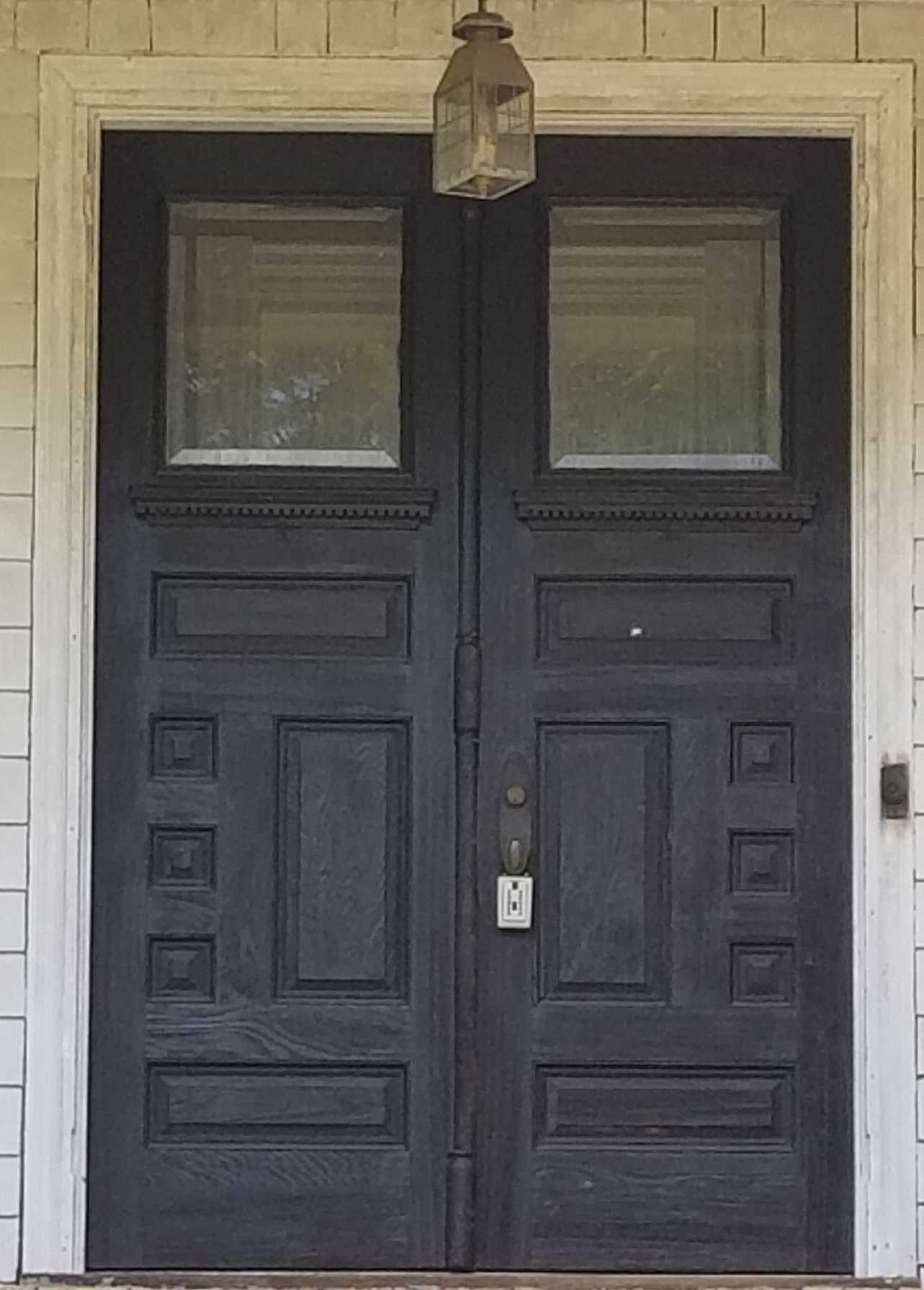 The dark color around the windows and other places would seem to be the color seen in the tax photo. At some point, the house was resprayed with the lighter color we see now. I have to wonder if they just masked over shutters on the bay window?!