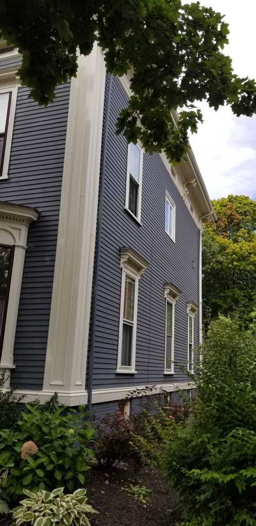 The house displays a striking verticality that is enhanced by the high basement along with the boxed and bracketed pilasters and the lack of any belt course. The details are all very correct in scale and proportion. It’s very textbook Classical Italianate and could have very well have been taken from a pattern book. The emphasis on verticality would become something of a hallmark in the mature works of Francis Fassett. Mind you there is no attribution that I know of to back this up. Fassett had moved to Portland from Bath, where he had already made a name for himself, in 1865. Could this be an early work? Would a successful businessman such as F A Waldron select a still relative newcomer to design his new abode?