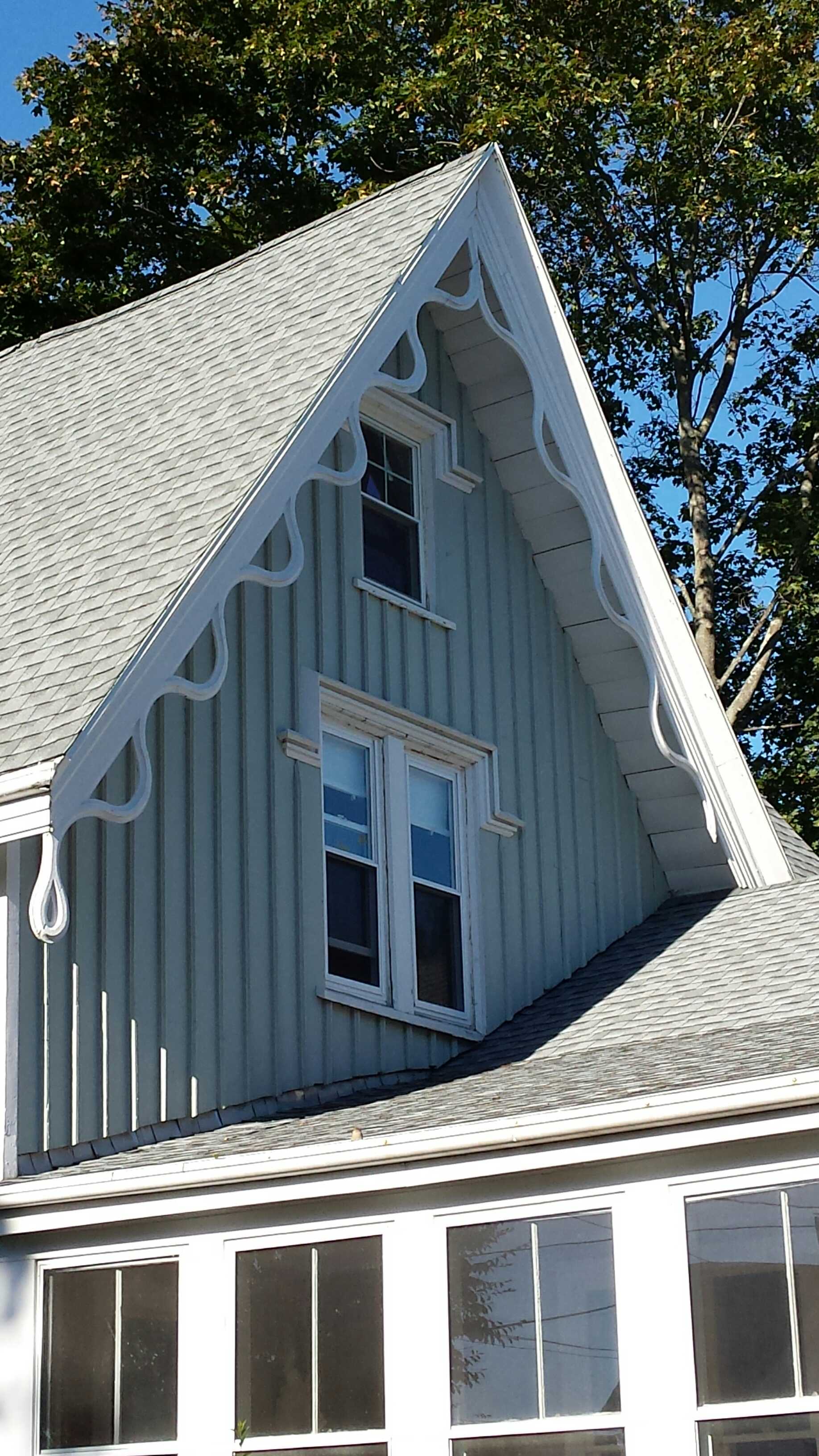The rear wing is more functional and, in my eye, more attractive. The lack of hoods and gently arched lintels create a simpler, cleaner look. An interesting detail is the use of a hipped roof on the pavilion of the ell whereas the other roofs are of normal style.