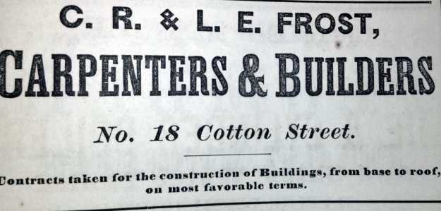 Advertisement for Charles R and Luther E Frost from Beckett’s 1873 city directory. Author’s collection.