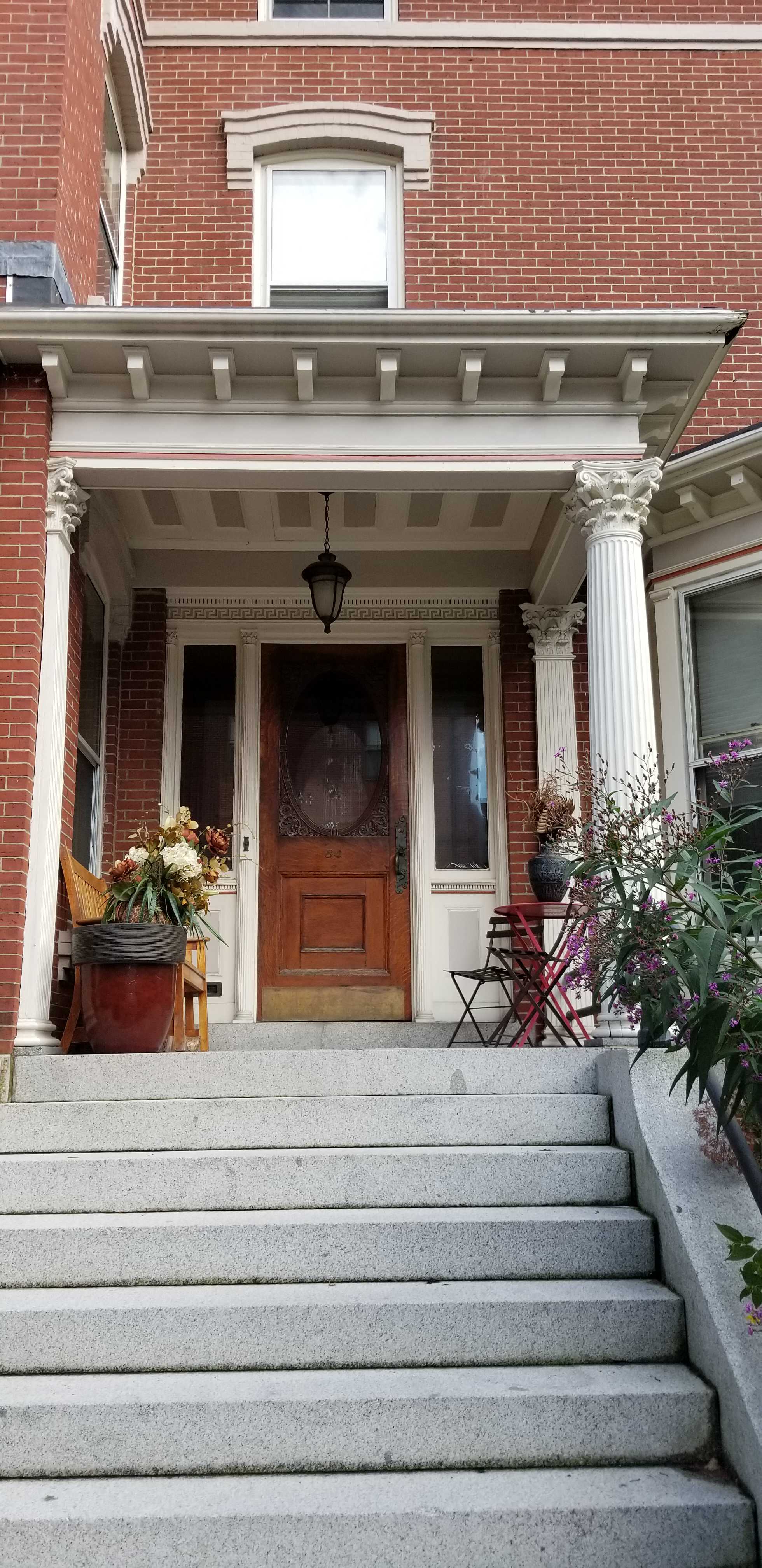 Holman and Alice Melcher were active in Civil War Veterans organizations. They organized and attended reunions throughout the later years of their lives. By the later part of the 1890s, Holman’s wounds from the war started to have an increasingly negative effect on his life. He died in June of 1905 from Bright’s Disease. Alice lived at 82 Pine Street until her death in 1923. At that time, their daughter Georgina and her husband Harry Johnson inherited the property. They had been living there since their marriage in 1906. Georgina and Harry continued to live in our subject until 1947 when they sold it to Vernon Hannaford. Hannaford divided the property in 1949 placing a dividing wall in the main block between the entry and the right-hand bay.