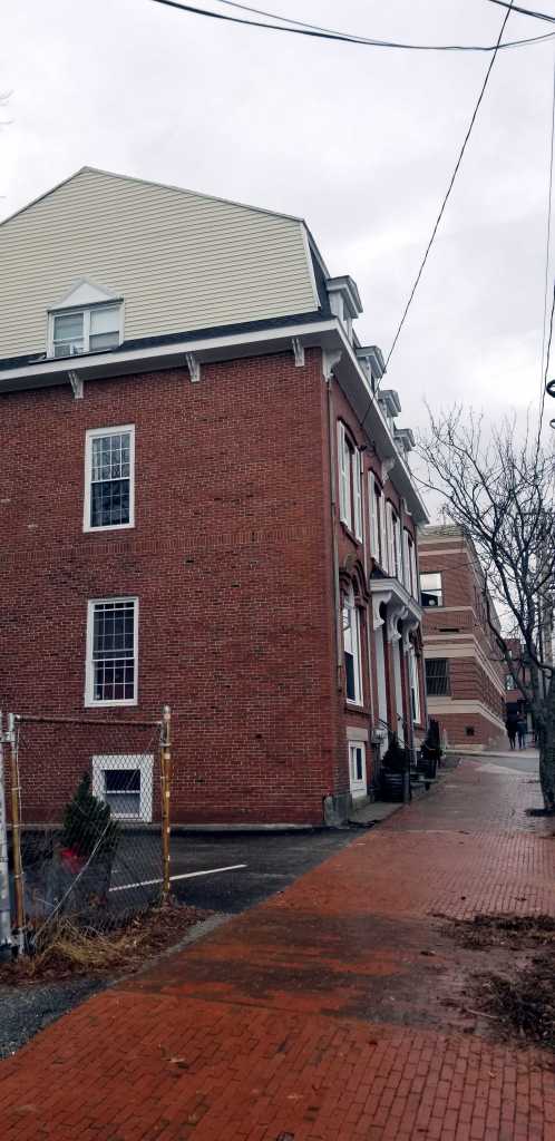 Harriet Cammett, the owner of the property when our subject was built, married a merchant from Boston named Levi Wetherbee in November of 1864. In June of the next year, Levi died of Bright’s disease. Harriet had purchased the right end unit of the then fairly new row at the bottom of State Street after her father’s death. Harriet married Horatio N Jose in 1891. He died in 1892. Harriet lived the rest of her life on State Street. She died in 1912.