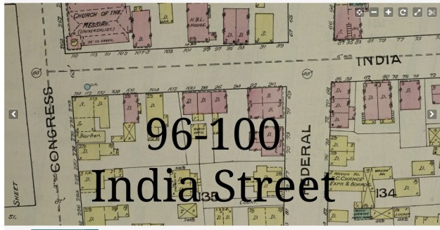 96-100 India Street from the 1886 Sanborn Insurance map. Library of Congress