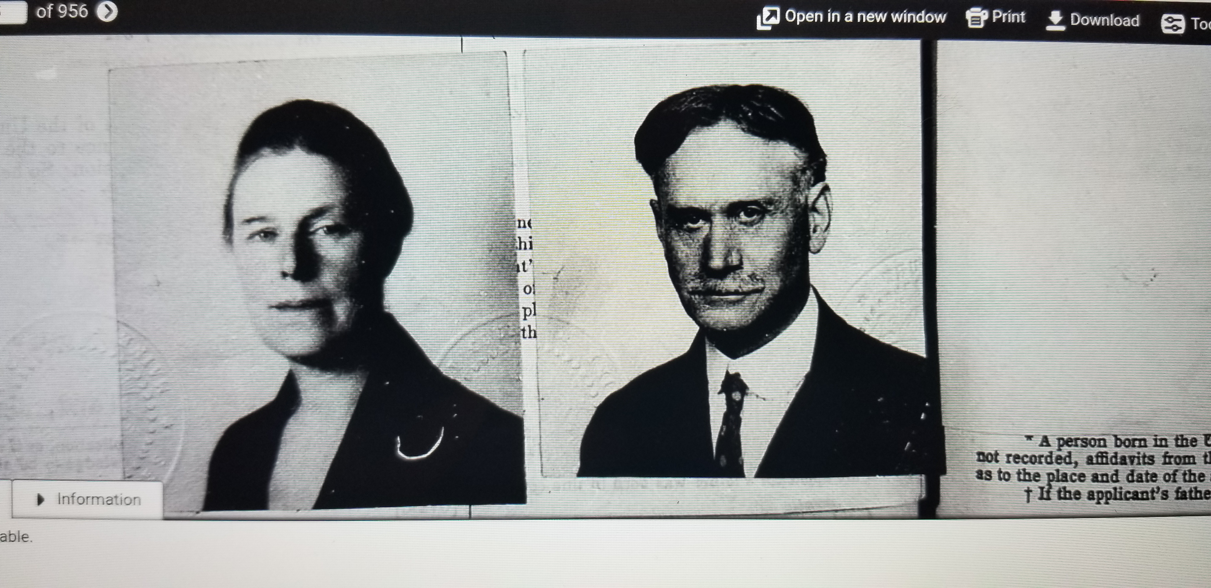 Sally and Herbert Payson from their 1925 passport applications “United States Passport Applications, 1795-1925,” database with images, FamilySearch (https://familysearch.org/ark:/61903/1:1:QV5Y-HNCJ : 16 March 2018),