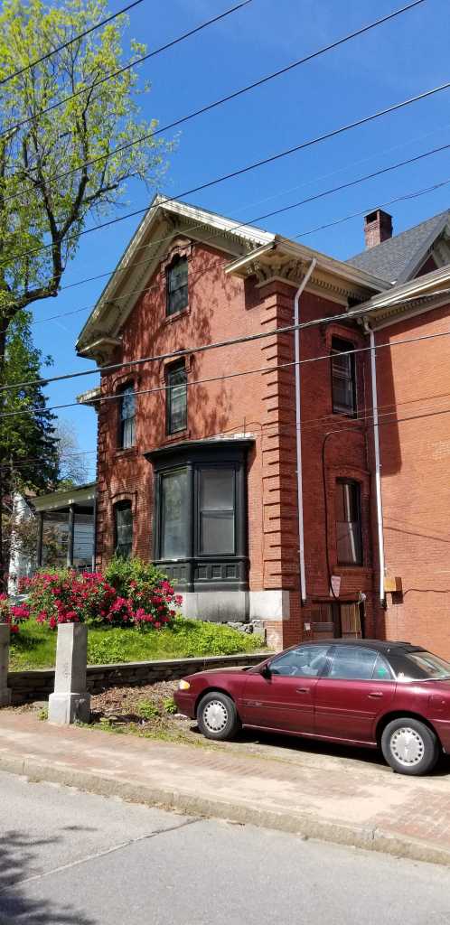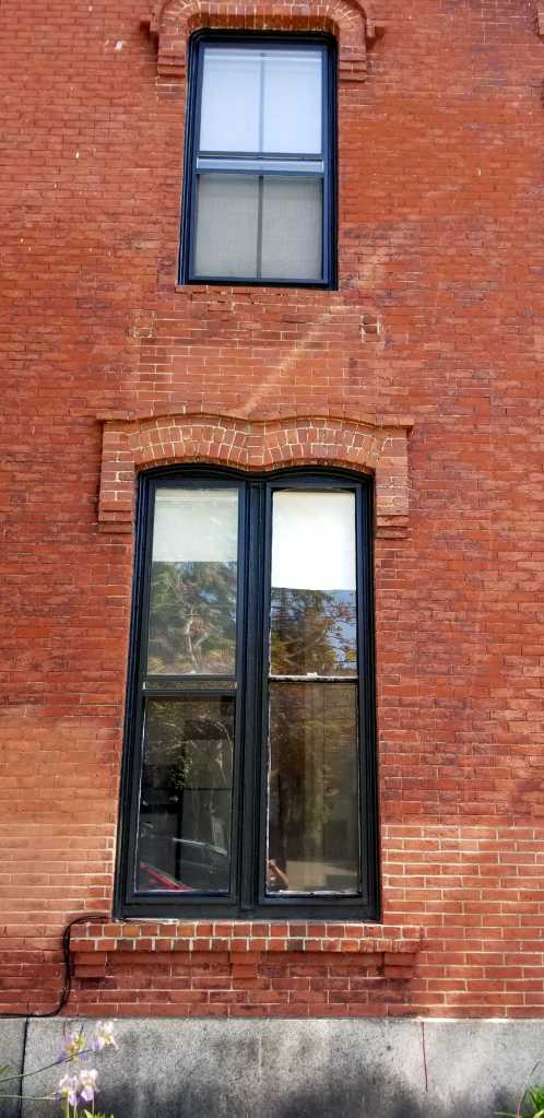 The gable end of the Walker Street façade is another place where changes appear to have taken place. The drawing from the 1870s shows a very symmetrical arrangement with 2 windows flanking a central bay on the first floor and 3 windows on the floor above. All very neat and tidy and what we would expect for the style and period. And nothing at all like what we see today. The bay has grown and migrated to the right corner where it replaced the window. On the second floor, the right-hand window is gone. For no obvious reason. It may have been when the home was split into apartments. I don’t think that’s likely as the work done to fill in the window opening, although not fabulous, was fairly well done and they at least matched the mortar. I suspect it was done at the same time the other changes were performed. I just have no idea why. These changes have removed any symmetry and most of the balance from the façade.
