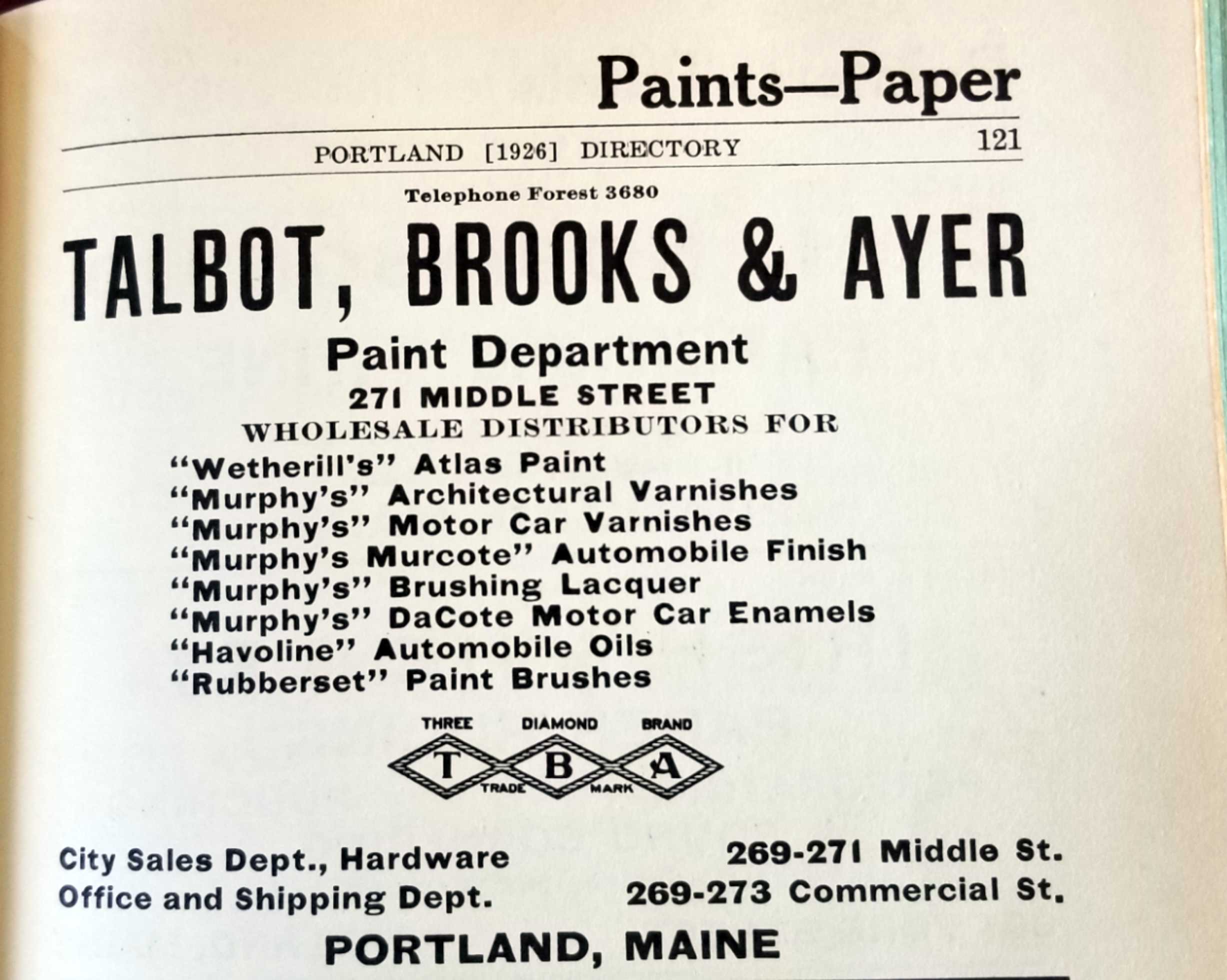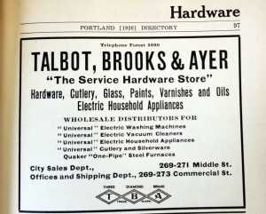 - Talbot, Brooks & Ayer advertisment from 1926 Portland City Directory. Author’s collection.