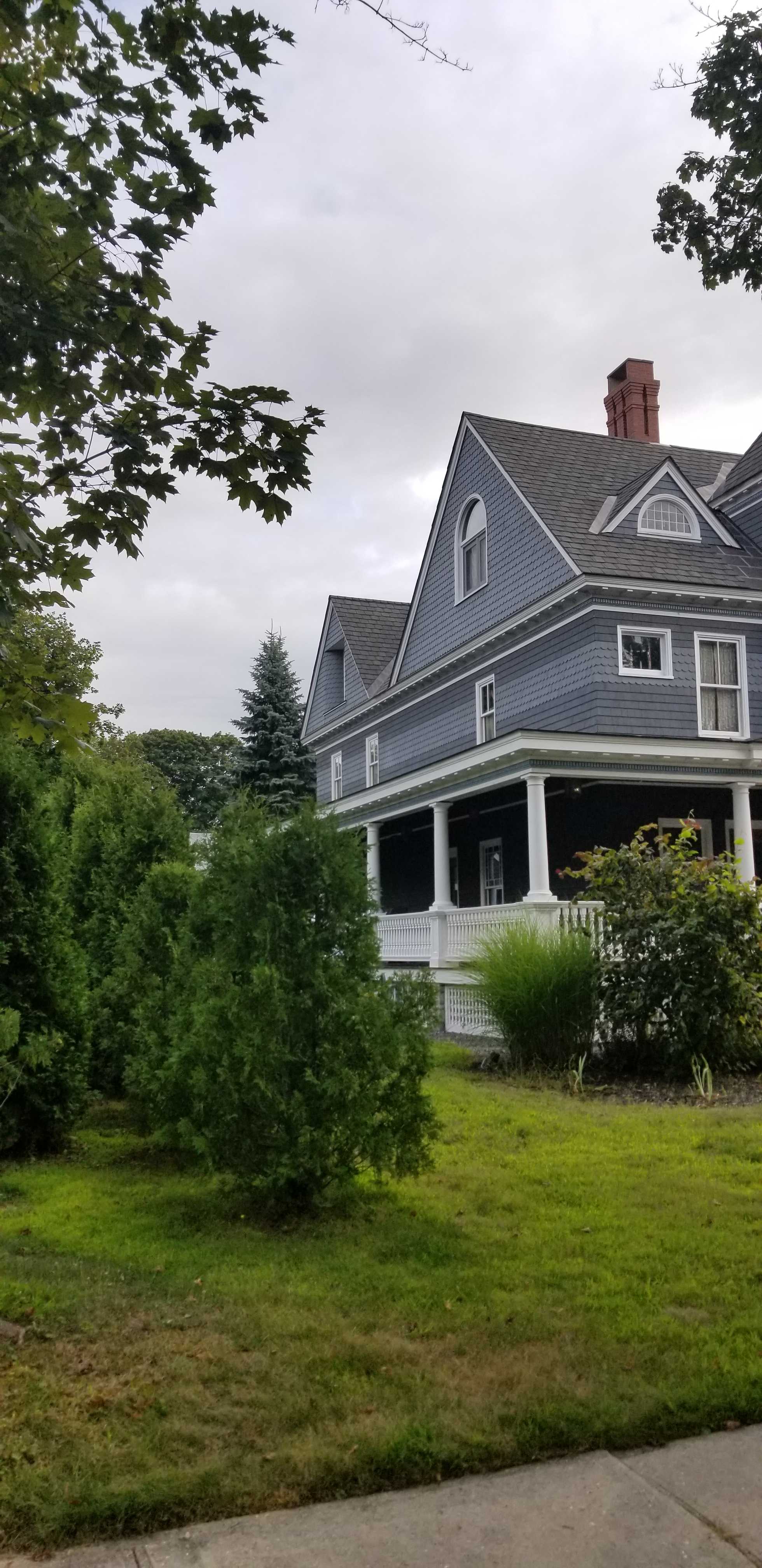Other notable differences from the tax photo are the loss of the barn and the rear extension as been enlarged. The first difference is understandable but a shame. The barn helped to link the house to the lot and not leave it marooned in a sea of grass and pavement. That being said, old barns can be money pits, and sometimes hard choices have to be made. It’s lamentable nonetheless. The second change can be seen in the lack of the rear gable on the southeast side and, presumably, it’s counter on the northwest. This also explains the shingle-style wrapped window treatments of the rear gables. An interesting touch but not really in keeping with the style which tended more towards Colonial Revival than Shingle.