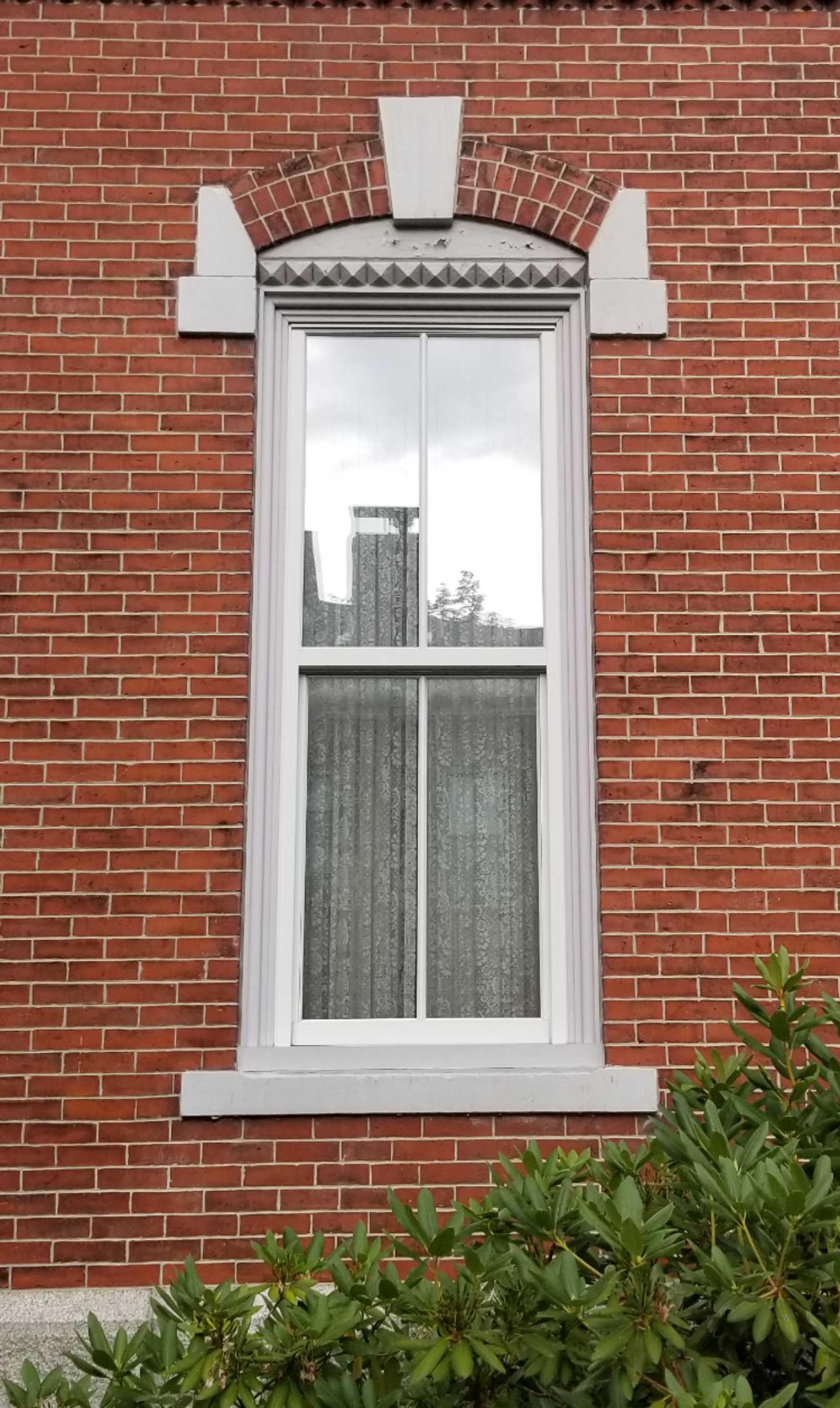 The house Ammi and Emily built is impressive. It’s a perfectly square box of nicely matched brick 42 feet on each side, 3 stories tall, the third being primarily in the garret. The brick is set with a very tight mortar joint which brings a more unified feel to the wall surface. The belt and string courses are very heavily defined and break each floor into its own delineated space. The third story is a complete entablature with architrave, frieze, and cornice all fully defined. A hip roof with a balustraded deck at its peak tops the structure. There is no record of any belvedere or ‘widow’s walk’ on the roof.