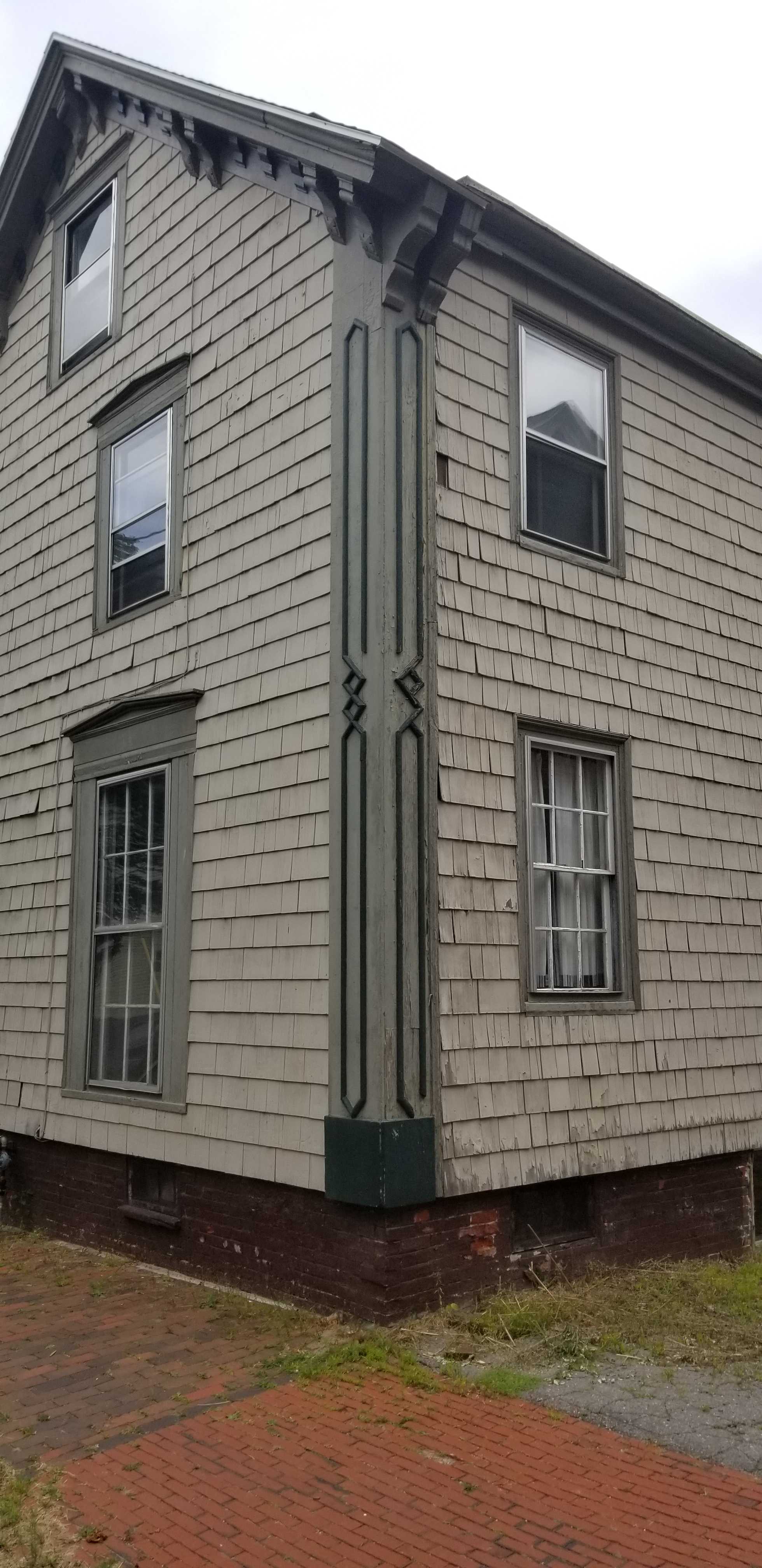 The left segment of, and much of the trim on, the house is from a later date than the right side. My suspicion is it was done during the Boyd’s residence. It must have been between 1882 and 1886 as the Goodwin Atlas does not show the cross-gable or east projection but the later Sanborn Insurance map does. When the cross gable and left side addition were built, the roof may have been raised to match and the right side was extended to account for the new roofline. That the windows were not moved may seem odd but if the original section was built in the older ‘post and beam’ or ‘timber framed’ manner. Unlike modern ‘stick’ construction where such changes are relatively easy, timber framing would have required a substantial amount of work to move anything. Perhaps the Boyd’s determined in was not necessary.