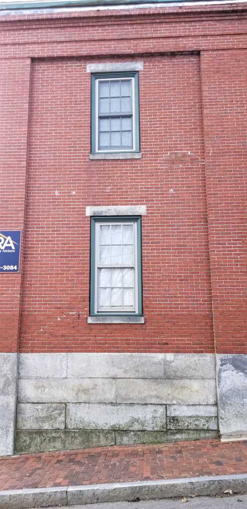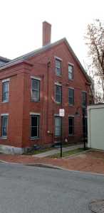 54 Maple Street is an almost complete copy/replica of 12-14 Winter Street, seen above. The biggest differences between them being the entries and we will get to them, the windows which are shallower on the Maple Street house, and an overall lower quality masonry job. Our subject this time is about the same age. It, by benefit of having both its dormers, shows us how the Winter Street pair looked originally as 12 has had its dormer replaced with a skylight. Another notable difference is 12-14 Winter Street was built by the bank president, large property owner, and Nativist curmudgeon William W Thomas whereas 54 Maple was built by an insurance agent and dry goods merchant who didn’t include any Nativist language in his deeds, named David Robinson Jr. David and his family had been renting from his father-in-law Nathan Nutter on Pleasant Street prior to purchasing the land for our subject from said, Mr. Nutter. The 1860 census shows Nathan & family living next door on Maple Street so perhaps he and David built our subject together.