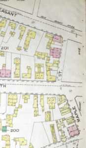In 1897, Patrick received a permit to convert a 2 story barn at the back of the property into a dwelling. At a meeting of the city alderman on June 15th, it was noted that the permit had been issued “in error” and other permits were likewise questionable. Also observed was that he had in fact torn down the barn and was building a new structure that “wasn’t sheathed in iron and didn’t have a gravel roof as he had claimed”. Patrick was ordered to stop work at the time. Although there doesn’t seem to be any follow-up in the news and the Richards Atlas of 1914 does not show it, Patrick most likely did finish his house as it was documented in the 1924 Tax roles.