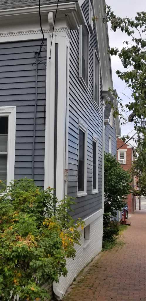 36 Mechanic Street is an 18’ x 36’ 2 story block with a 12” x 14” single-story ell attached. It’s narrow and deep with a gable end to the street and the entry in the center of the long side. It’s a simple form that we see plenty of throughout the city. It spans decades and was easily adapted to the architectural style du jour. In our case, the style was Greek Revival as marked by the paneled corner boards and lightly dentiled architrave.