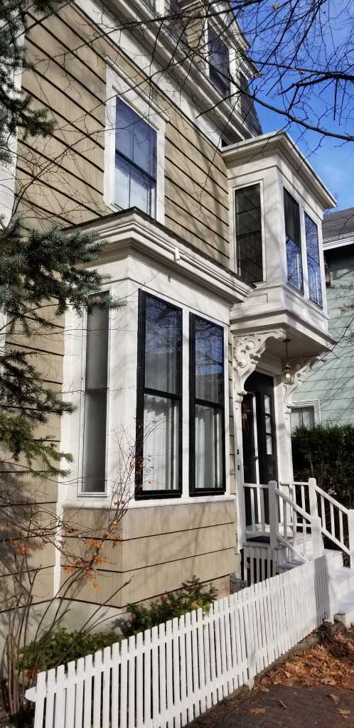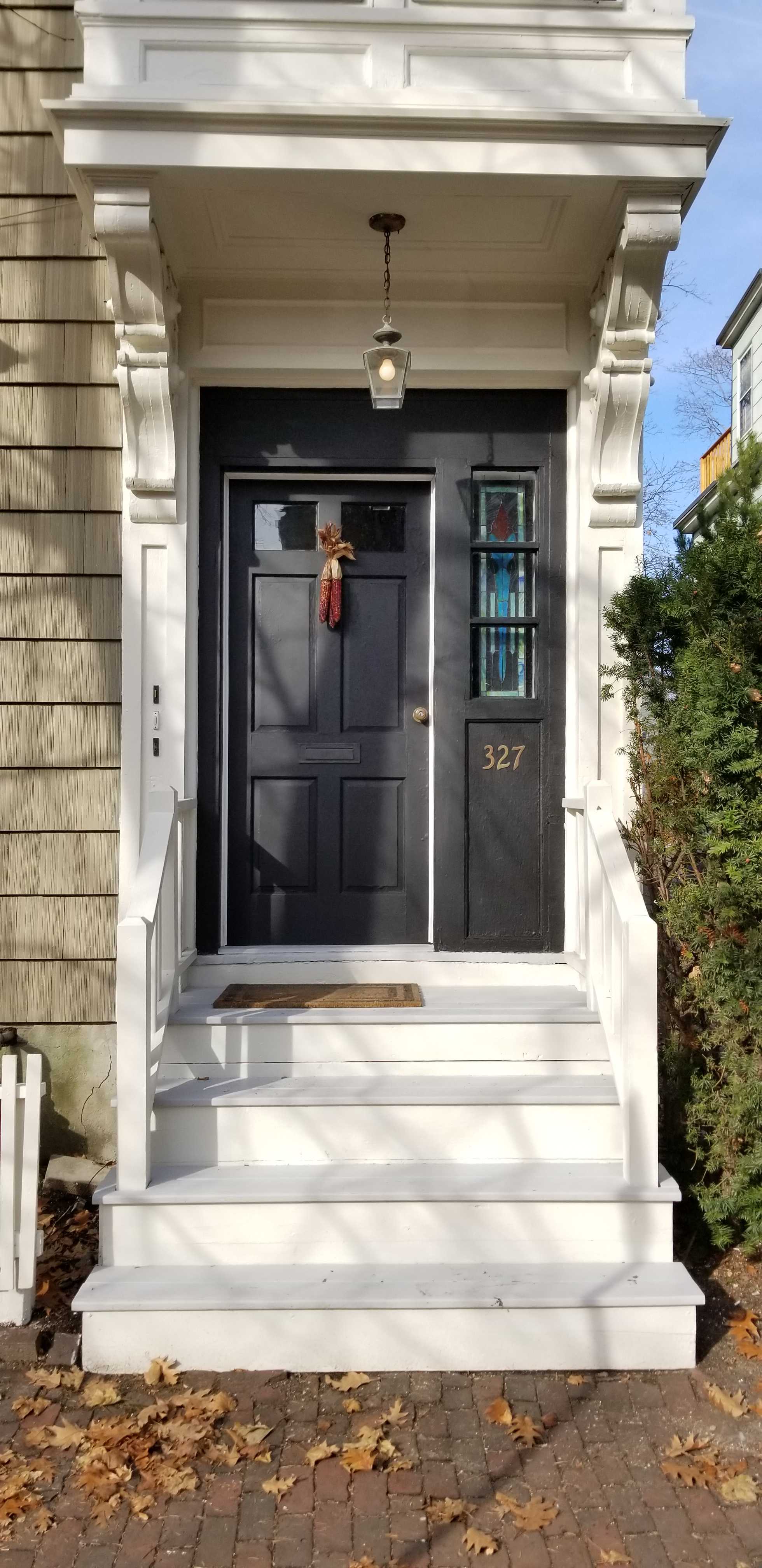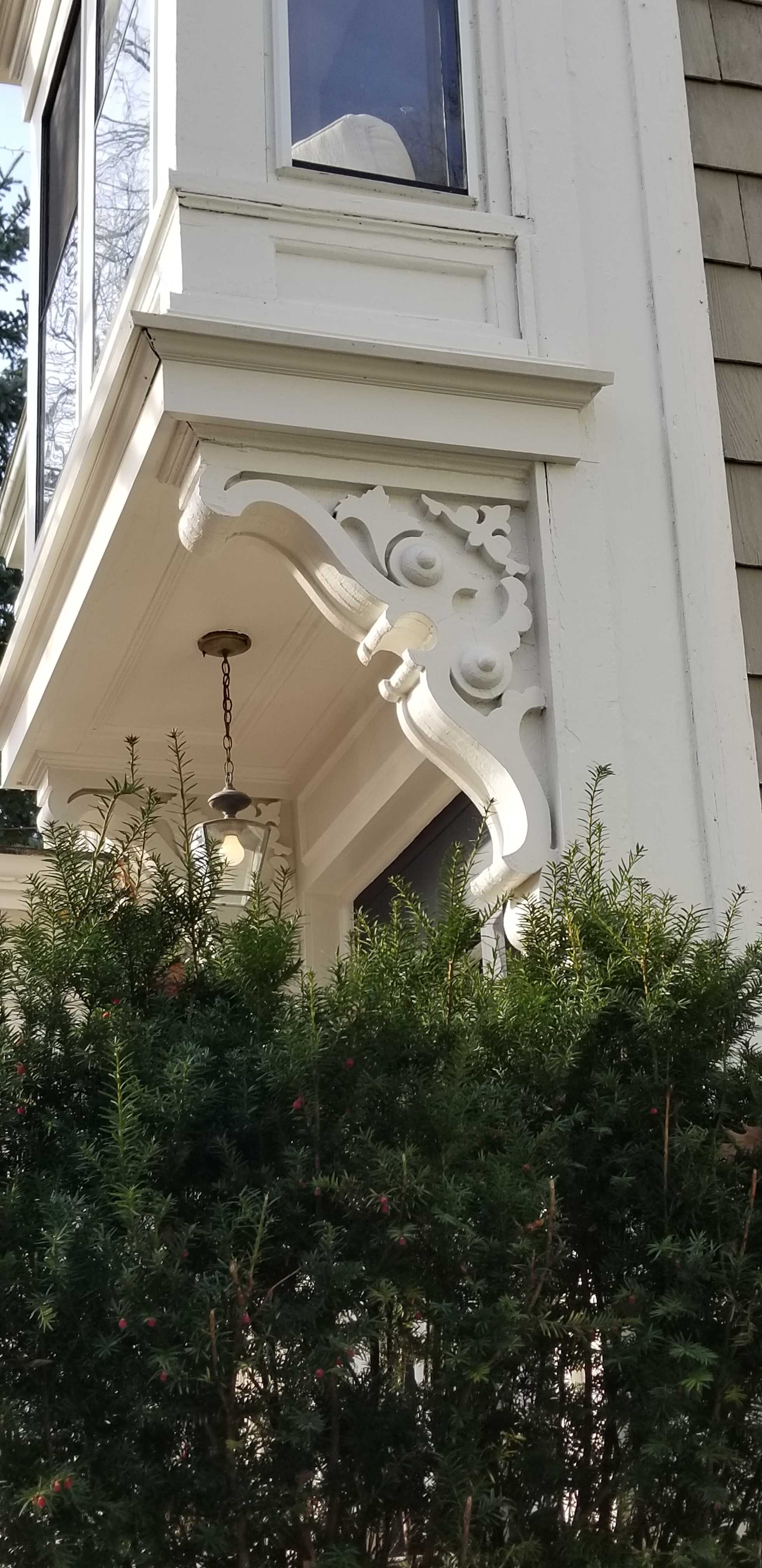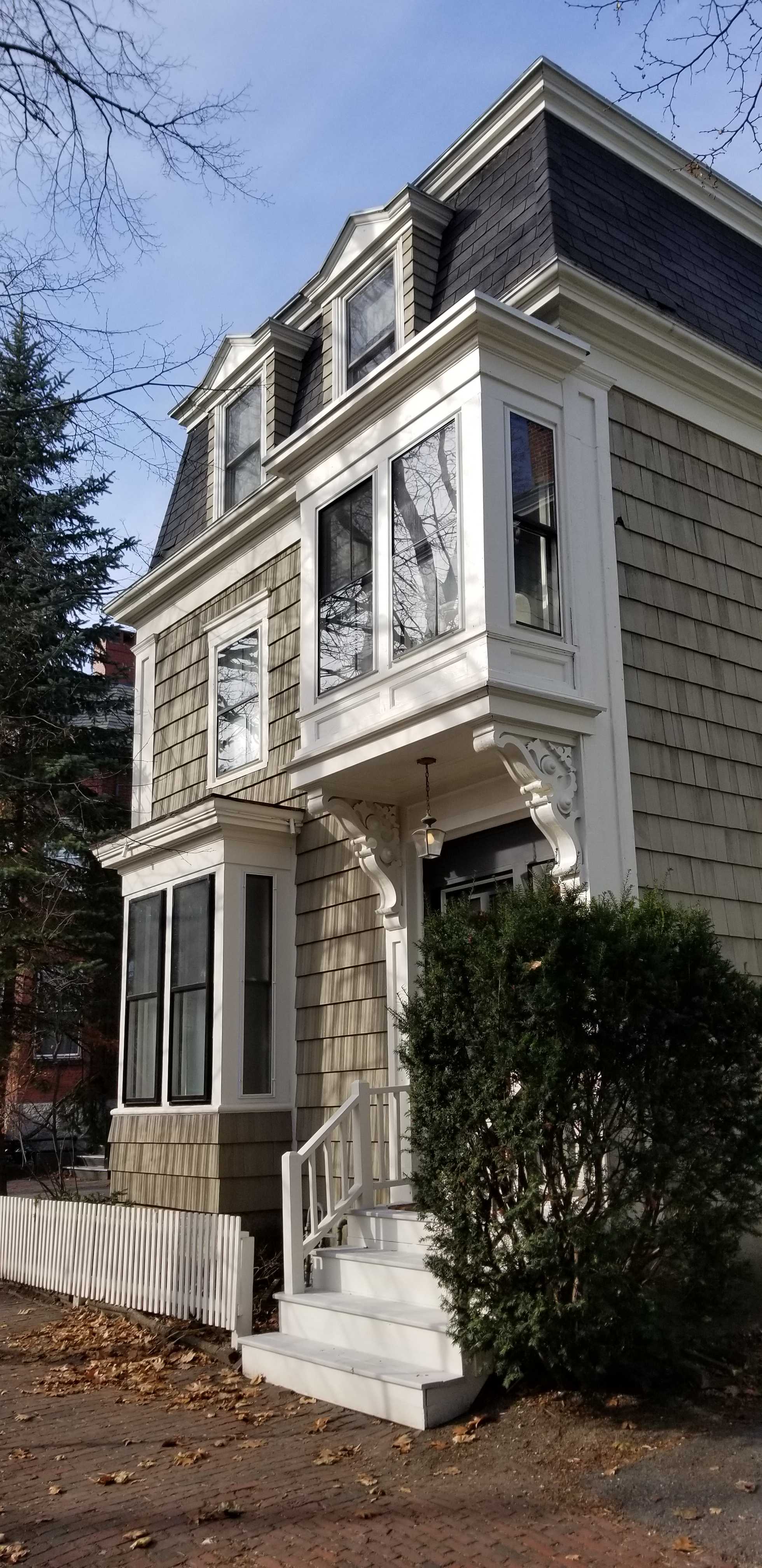 What they initially built is not clear. The Portland Historic Resources Inventory of 1976 states the house was originally a Greek Revival with the Mansard roof and details added later. Looking at the house today, this description seems to fit. There are some ‘Greek’ details in the paneled pilasters with simplified Doric capitals and the plain but tall architrave. The main block is a 15’ x 30’ block with a 13’ x 18’ ell that carries the line of the right wall.