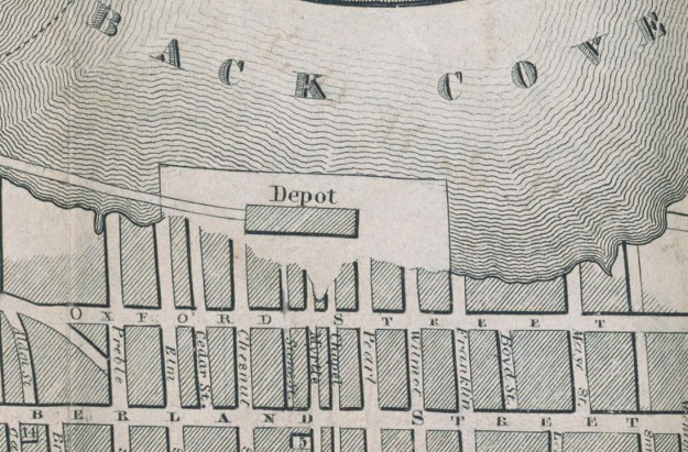 It stands alone in a sea of asphalt. Once it was surrounded by wooden houses now gone. But for the brick house on the corner on Oxford Street, it’s the only survivor on this side of the block. From it’s building in the late 1840s, it has seen the rise and fall of the railroads and an industrial revolution. All of this change taking place on land that didn’t exist when it was constructed. The Back Cove area was an area of some industry such as rope walks and potteries in the early part of the 19th century. The bay was accessible to some shipping but was, overall, a swampy, marshy area that held little interest to most city residents. With the coming of the railroads in the late 1840s, all that changed.