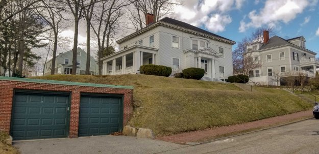 One of the oddities of 22 Deblois Street is the fact that it is ‘landlocked’. There is no way to get within 50 feet of it with a car. Not to mention the house sits 10+ feet higher than the steeet. When built, our subject had no neighbors behind it on Highland Street but the lot described in the deed doesn’t include any mention of a right-of-way to Highland. The brick garage was added after 1924 as the Dudley’s owned a 3 car garage on Prospect Street at that time. Add in the lack of a link between the garage and the house and this seems to be a real issue. It is a puzzlement.