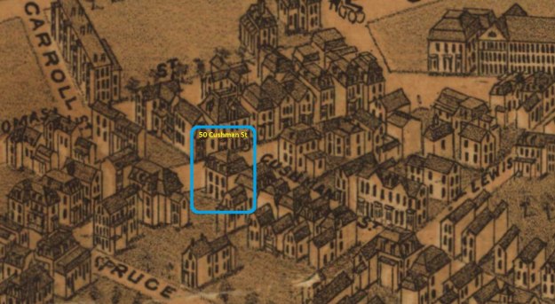 James Tenney liked decoration. He seemed to revel in it at times. From crockets to cabochons, brackets to sconces, and ribbons to ropes, he used them to highly expressive levels in his works. That being said, his work was never over the top and always showed a level of balance missing in some of the work of the later Queen Anne era. Tenney worked in a pretty tight area of the city that centered here on Cushman Street and extended onto Emery and Pine Streets. The lot for our subject, on the southwest corner of Cushman and Emery Streets, was purchased from James’ father-in-law, William H Stephenson, in 1870 for the substantial sum of $3000. James had married Annie Stephenson in 1858.