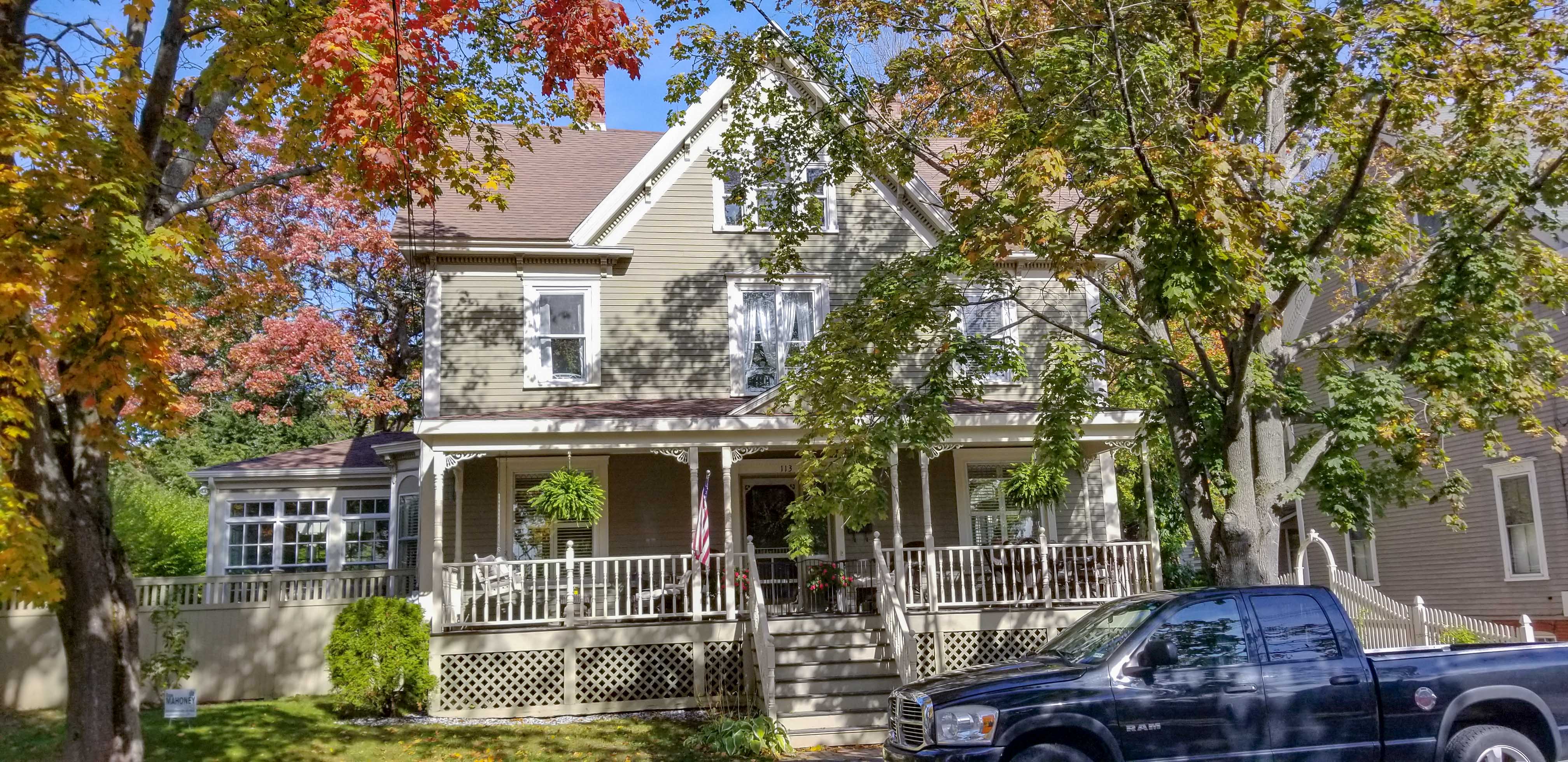 What Edward and Sarah built is a solid house that is 36′ on the street and 28′ deep. There is a 14′ x 16′ ell projecting from the center of the rear wall. The house is 2 full stories with a 3rd in the garret. The form overall is conservative. The details are restrained and mostly limited to the eaves where a small dentil molding caps the wall and simple brackets support a modestly projecting cornice line. The center windows on the 2nd floor are paired and capped with a pediment that matches the small pediment of the porch. Above, in a gabled dormer, is a Palladian window that is too narrow for its height but fits the space nicely.
