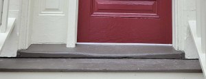 - Close up of worn stoop.