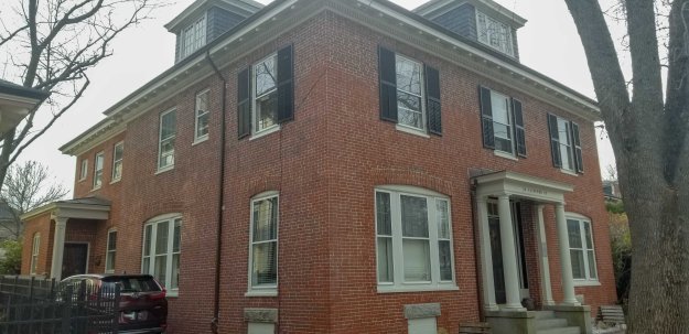 I think it possible Ammi and Joseph demolished the carriage-house and built an entirely new structure. That being said, those oddly placed basement windows and the change in brick texture about 4 feet from the eave line suggest there are parts that are not from the same fabric as the rest of the house. Could it be that they raised the roof and parts of the walls and built a new house under them?