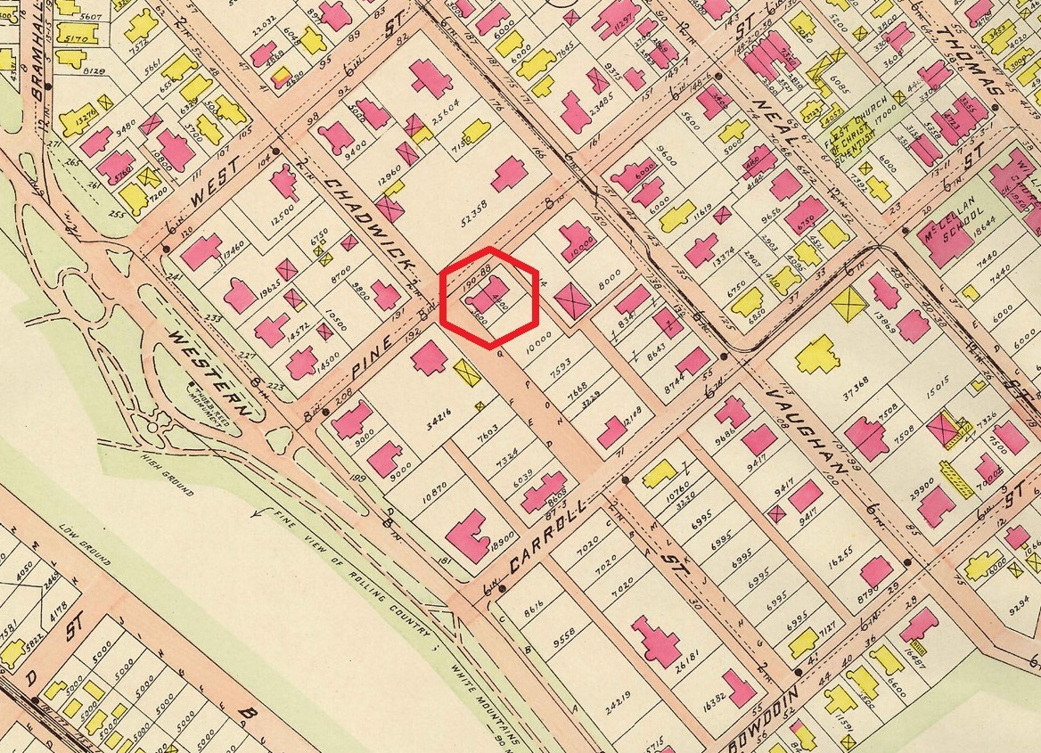 The land that would become 188-190 Pine Street on the 1882 Goodwin Atlas. Portland Public Library Digital Commons.