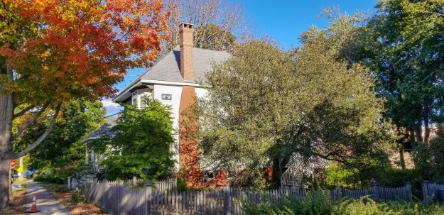 Fred Tompsons domestic work was usually quite good. Here on Belmont Street, something doesn’t seem right. There is an overall lack of cohesiveness in the design. Some of the windows, mainly the round one on the northeast wall, seem to have no purpose. The modillions on the main facade are too small and, even with the contrasting color, are lost in the deeply projecting cornice. The Palladian window on the second floor is a nice touch and is well balanced in the wall, but the proportions are too low and ‘fat’ to be comfortable.