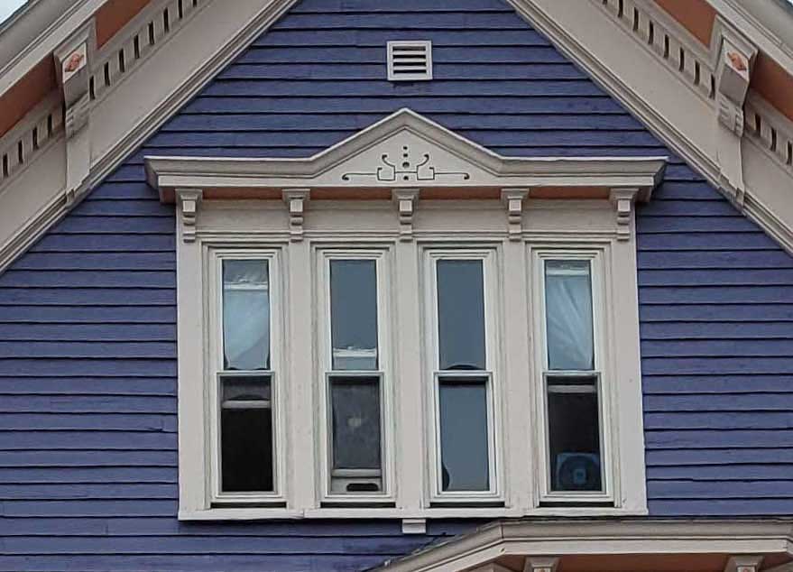 The house Robert and Mary had built is 26′ on the street and 50′ deep. It is 2 full stories with a third in the garrett. A substantial house for a large family. The windows are all quite deep for the period and all have substantial trim and caps. The detailing is pretty standard. Corner boards lead up to a heavy entablature. Chunky brackets and dentils hold up a modestly projecting cornice. The main facade is classic ‘East Ender’ but the 4 part window on the third floor with scroll cut pediment is a unique feature that adds some extra character.