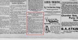 - Advertisement for sale of the homes of Wilson, Chase and Milliken in the October 8,1886 Portland Daily Press. Library of Congress.
