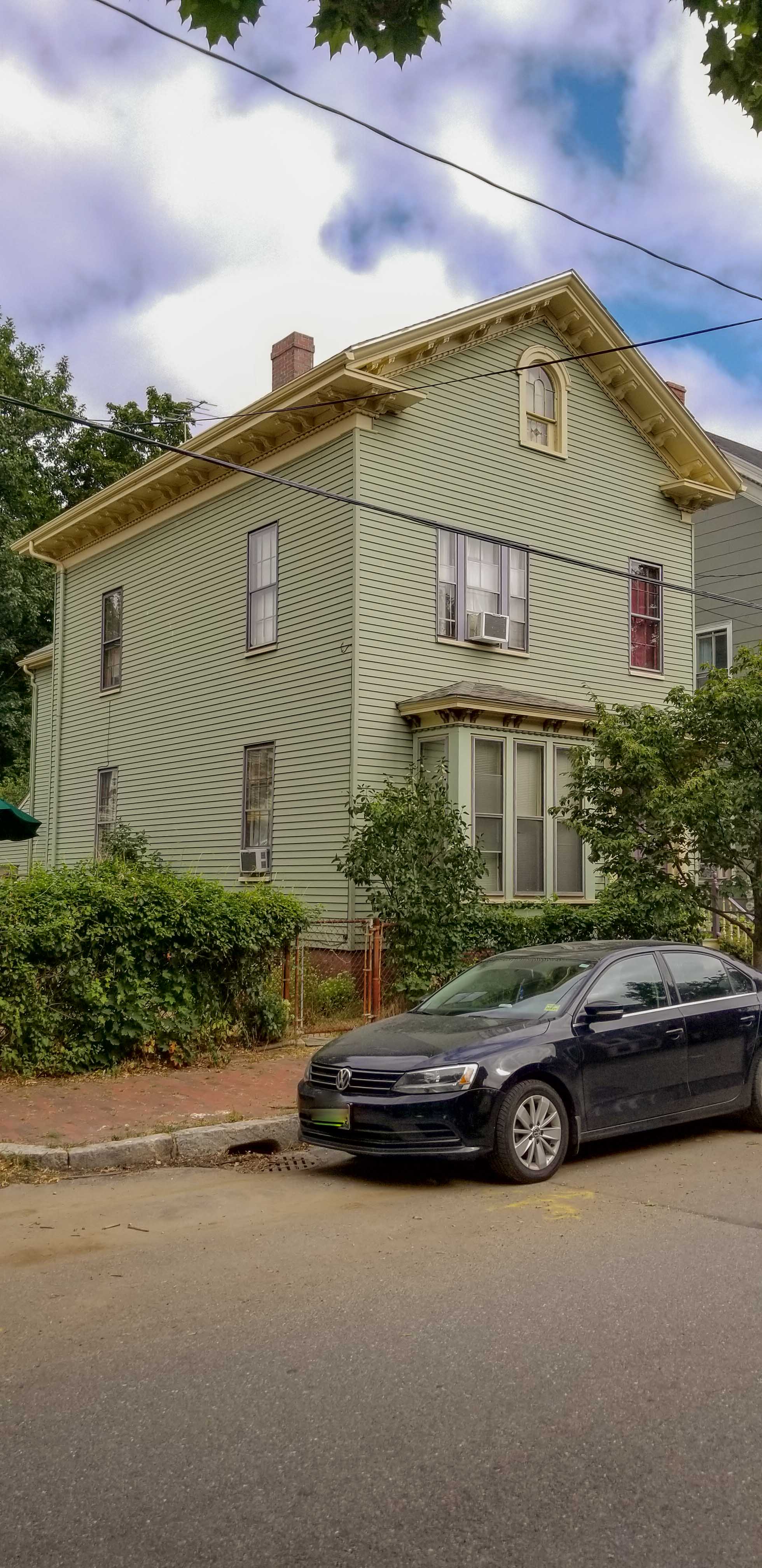 As mentioned, the vinyl siding and its accompanying ills were not the most egregious acts of remuddling performed on 33 Cushman Street. The tax photo of 1924, zoomed below, shows an ornate 3 part window with rounded tops and ornate hoods with matching details on the other windows on the second floor. This is all gone. The 3 part arrangement and basic sizing are there but one would never know what was there without seeing the earlier photo. Gone too are the wider corner boards.