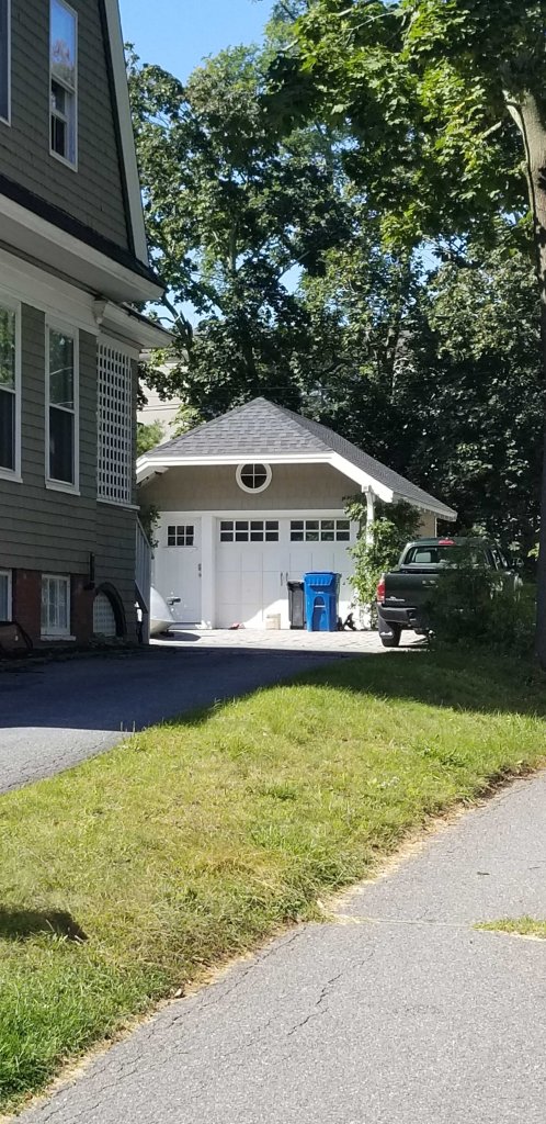 When I photographed our subject, I thought the garage was original as it is period correct for Stevens. When I saw the 1924 tax photo, I realized I was incorrect and this is a modern garage. It was most likely modeled on the garage Stevens designed on Bowdoin Street for Charles Alexander in 1917.