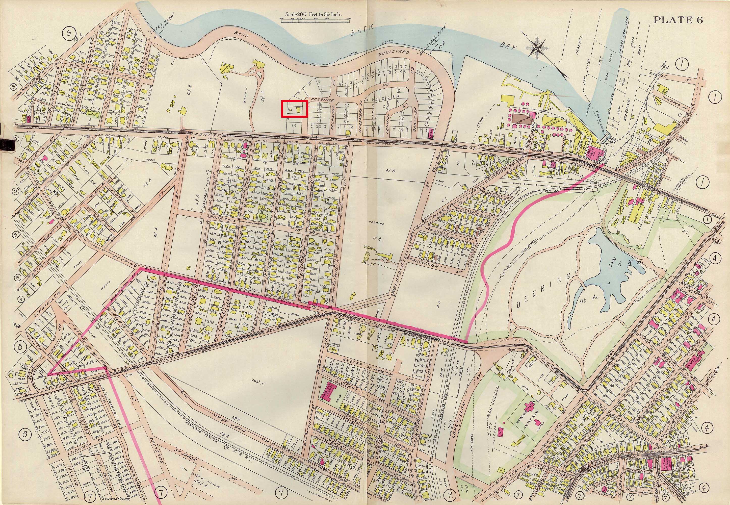 The land for Boulevard Park, sandwiched between Back Cove and Forest Avenue, was purchased from the Deering heirs and the Ricker Land Company in 1912. It was supposed to stretch farther east through Belmeade and 2 more roads, Fenwick and Oakleigh beyond Grasmere. This eastern end was never developed. The Boulevard Park Company had been formed in 1910 to develop the property. 1910 was also the year a plan for Boulevard Park was filed with the Registry of Deeds. The first sale of land was in 1914 when Albert Spear Jr purchased a lot on Forest Avenue and opened an auto repair shop. The Blanchards were the second purchasers, also in 1914.