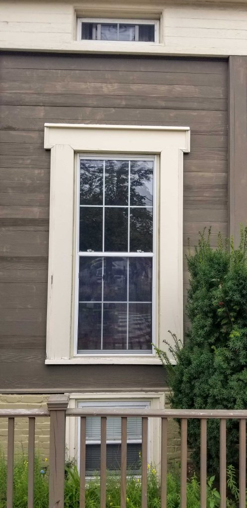 The first-floor windows are probably the most ‘Greek’ item of the building, other than the basic forms. With their impressive depth and strong but simple moldings, they are a beautiful example of the type. Other items worthy of note are the interior shutters and the method of connecting the rails to the header. The latter being the sign of a craftsman.