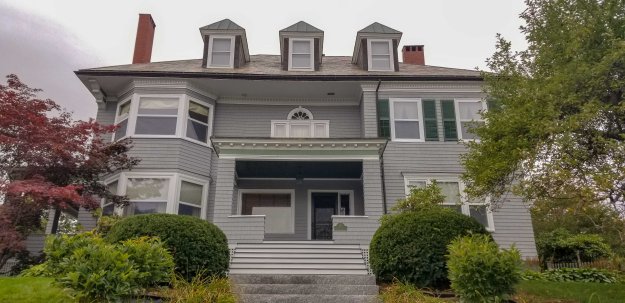 From its perch on a knoll above the crest of Coyle Street, 118 Beacon Street commands one’s attention even from the distance of Forest Avenue. It is a substantial house in its own right but. up on the knoll like that, it is almost looming over the street. It does make for an impressive entrance.