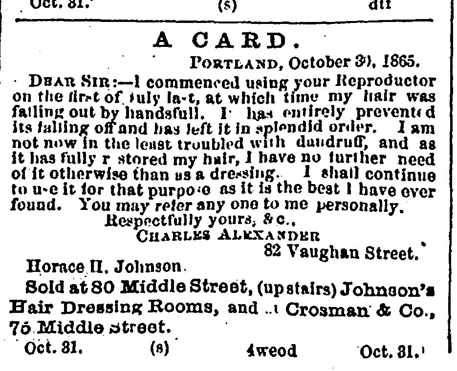 CAA Daily_Eastern_Argus_1865-10-31 Hair