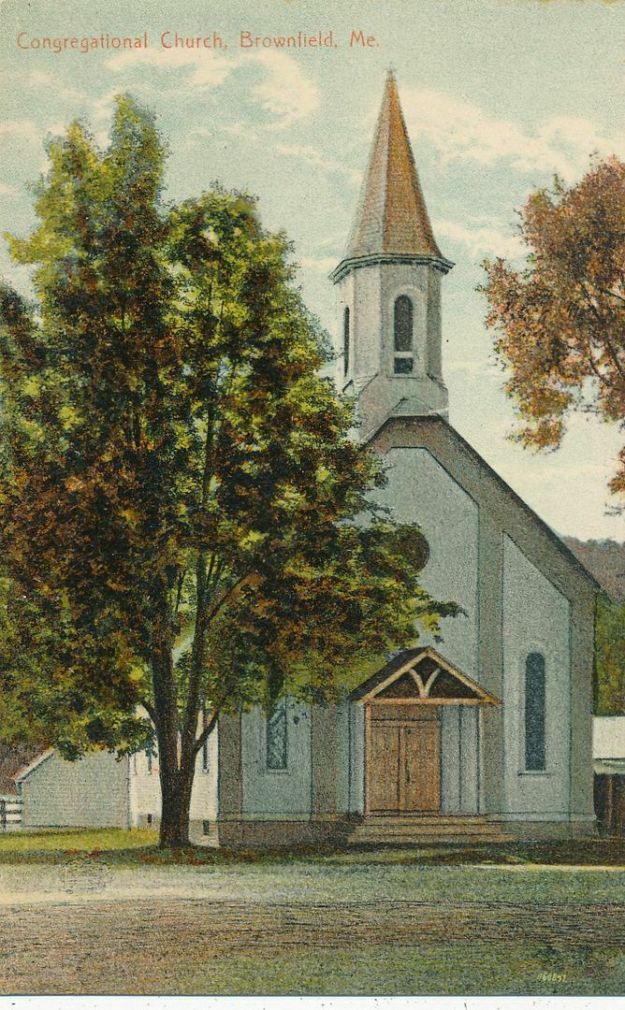 The final church in Maine no longer exists. Although there is no direct attribution, there is enough evidence to make me pretty positive that Charles A Alexander provided the design. The most obvious thing is the shape. As I noted on the Galt Block, the form of the front facade is a common link in Alexander’s works. From the Maplewood Farm to the West Congregational Chapel, the Galt Block, and here we see this shape. The other evidence is that Samuel and Andrew Spring donated to the construction and appointment of the church.