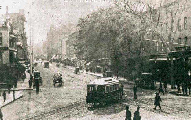 Undated photo of Monument Square with the Preble House at right. Portland Railroad: Part I, historical development and operations. Osmond Richard Cummings